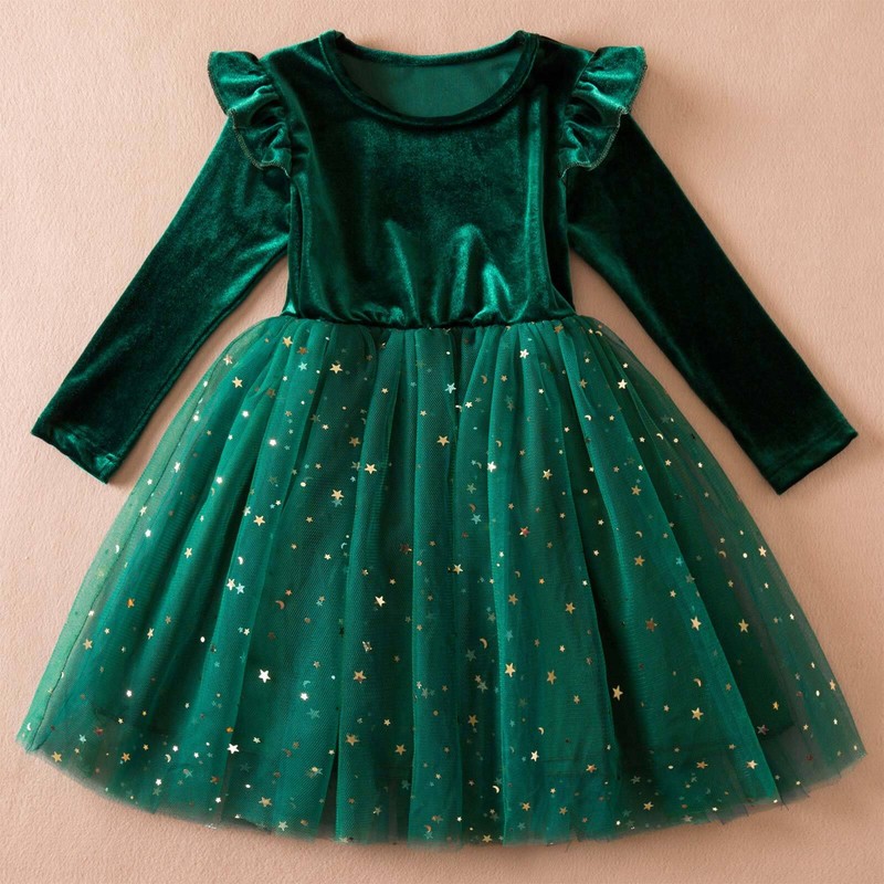A long sleeve velvet tutu dress for toddler girls, is perfectly to dress up girls in Christmas, birthday, parties.