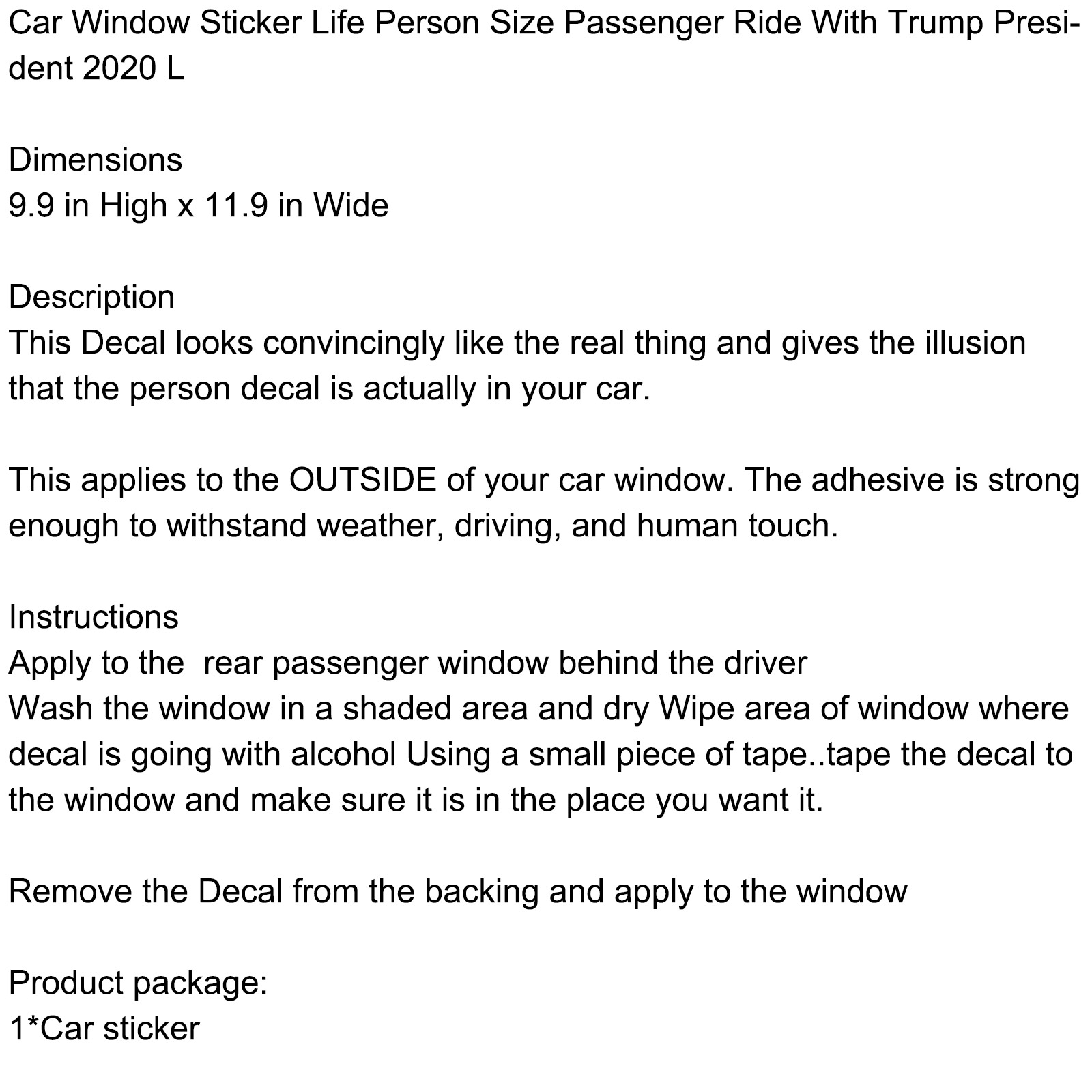 Car Window Sticker Life Person Size Passenger Ride With Trump President 2020 L
