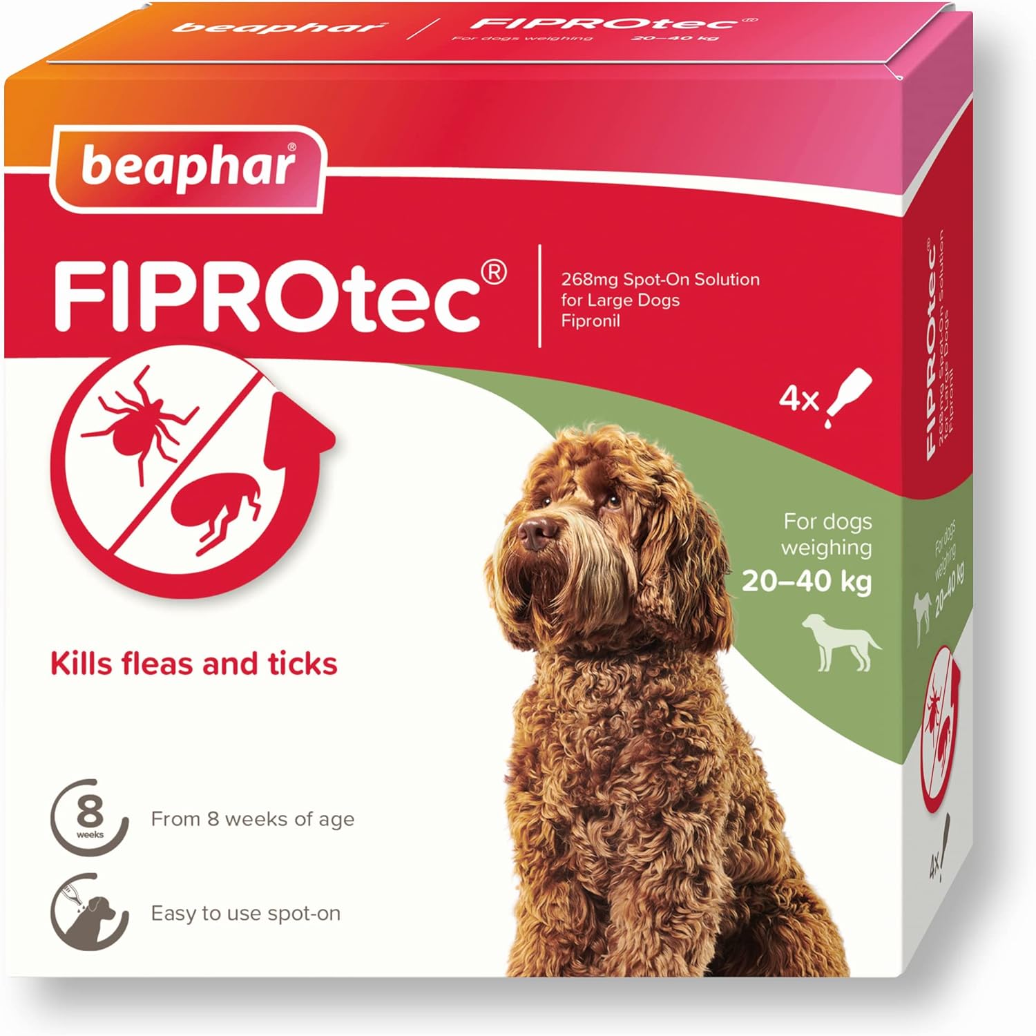 - KILLS FLEAS AND TICKS: Beaphar FIPROtec Spot-On for Large Dogs is an effective and affordable veterinary medicine to control fleas and ticks on your dog, killing fleas within 24 hours and ticks within 48 hours.