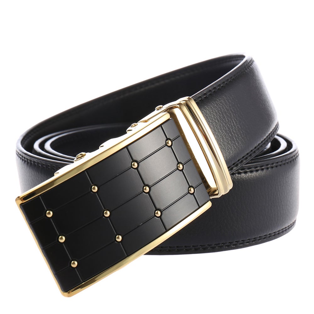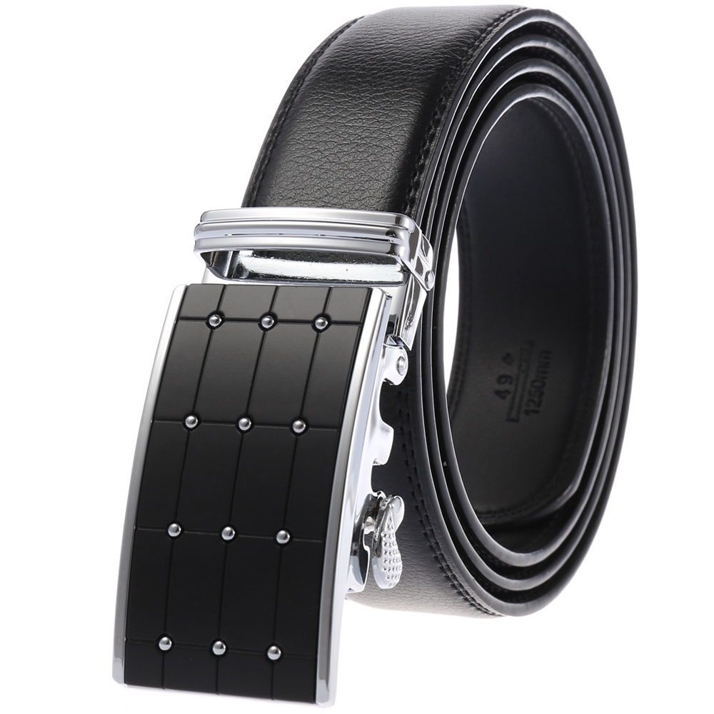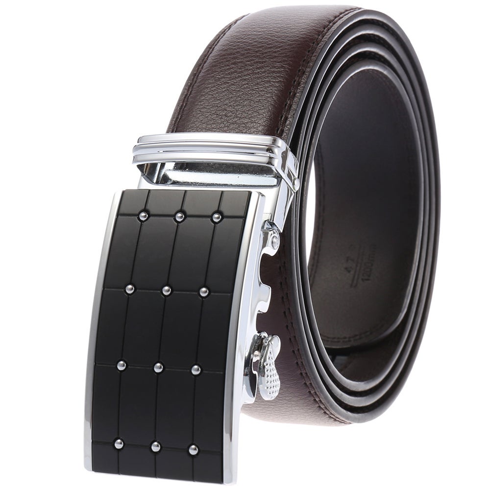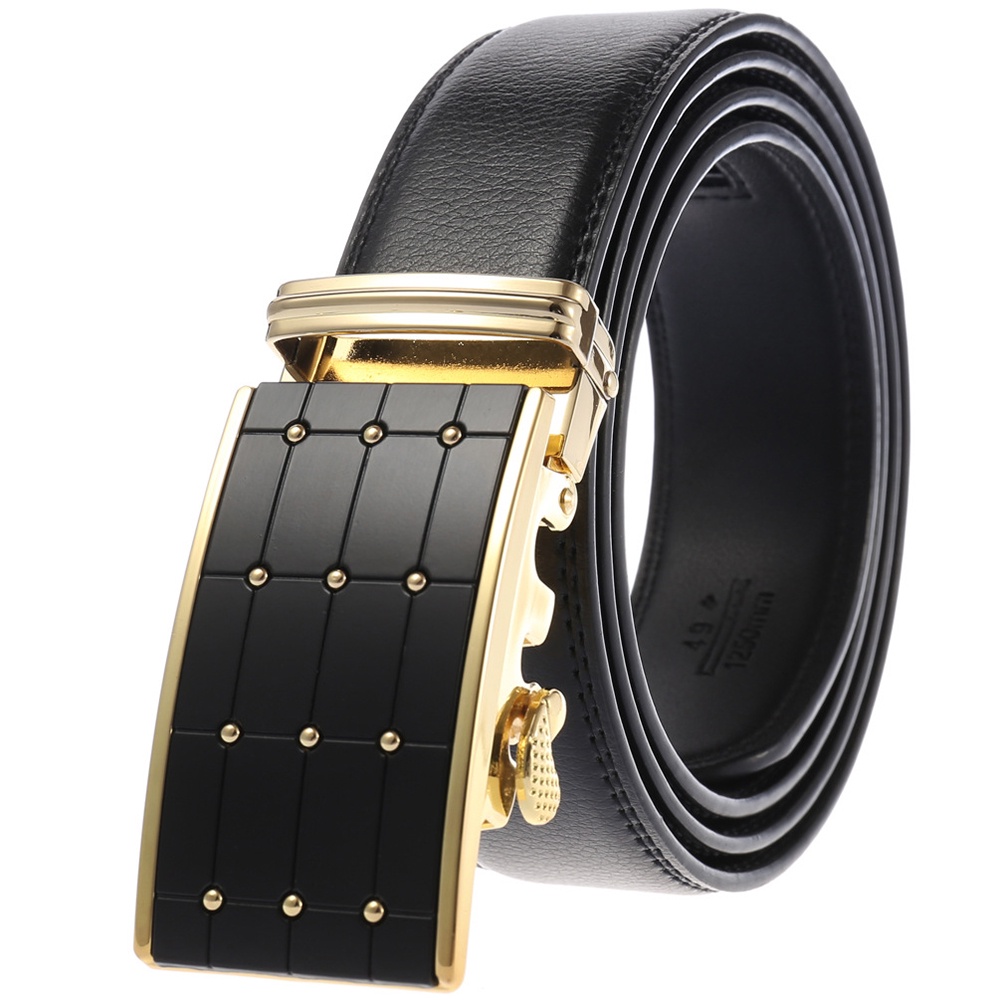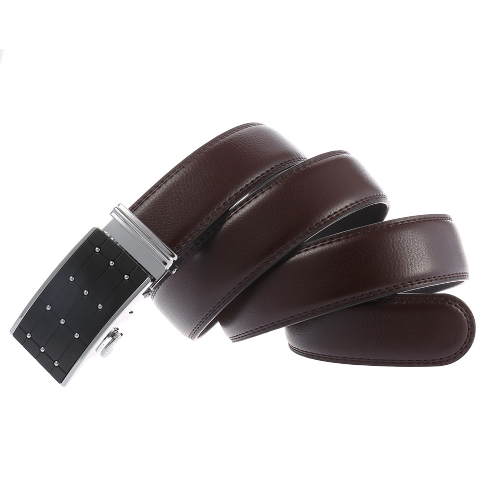 5.[Easy to Use] -Just slide the dress belt into the sliding buckle and pull leather belt through, the buckle simply automatic locks. To release the ratchet belt, gently push the lever on the side of the automatic buckle and lock will snap. Simple, smooth and sleek!