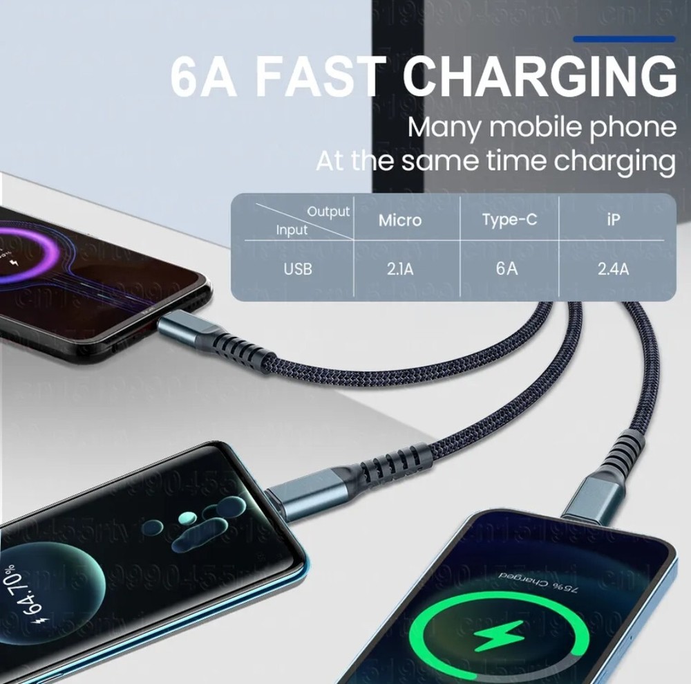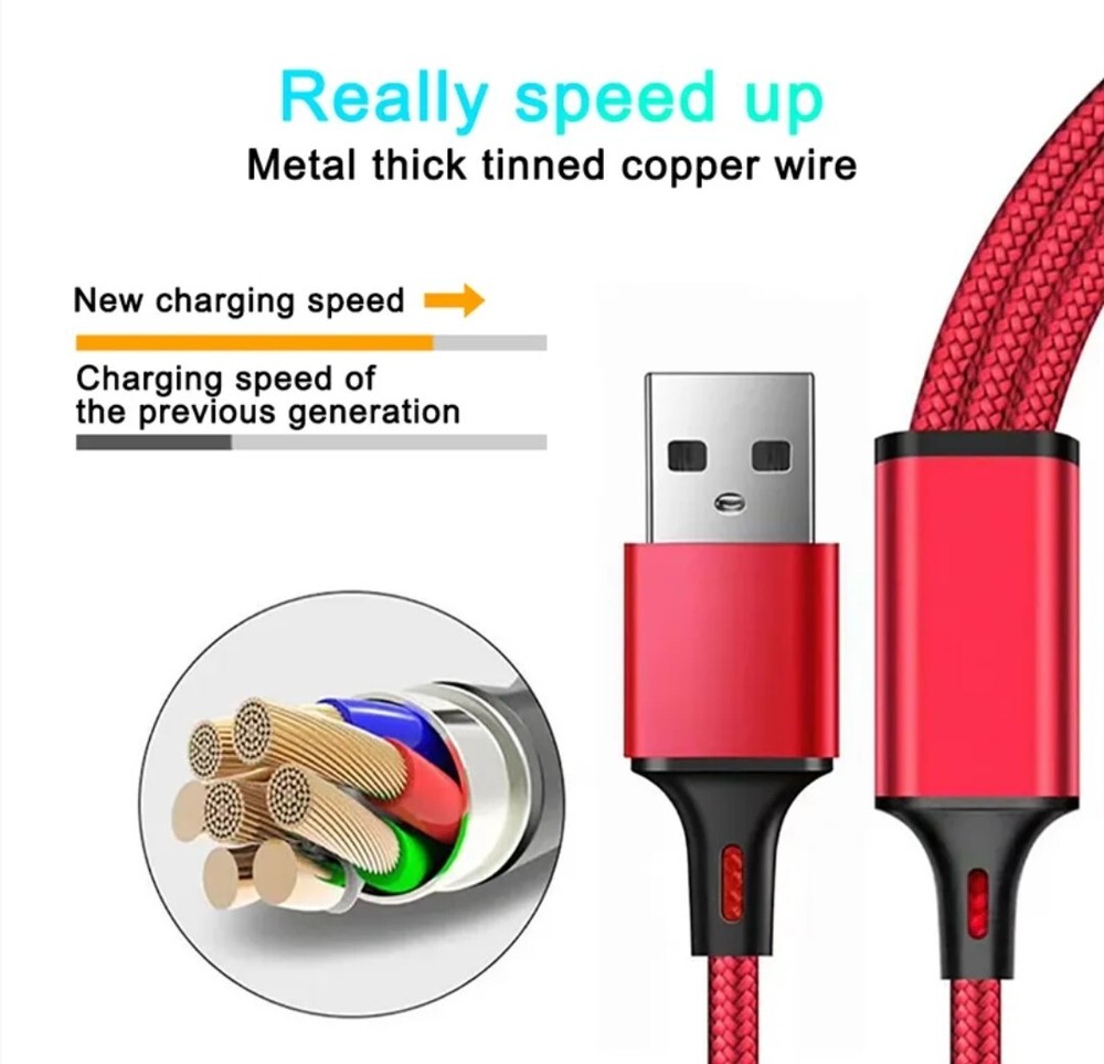 Universal 3 in 1 Multi USB Cable Fast Charger Type C Lead For iPhone, Samsung Phone, Micro
