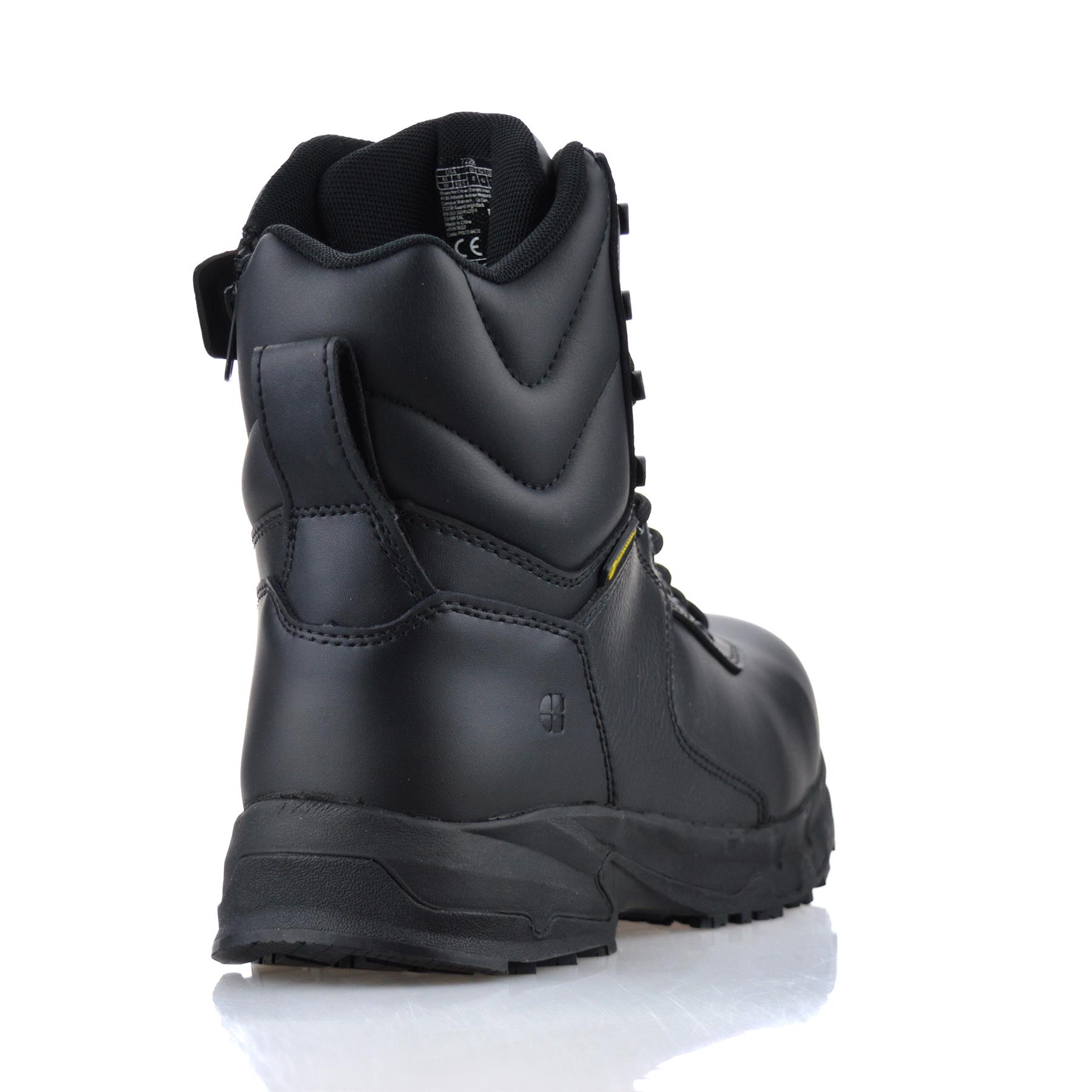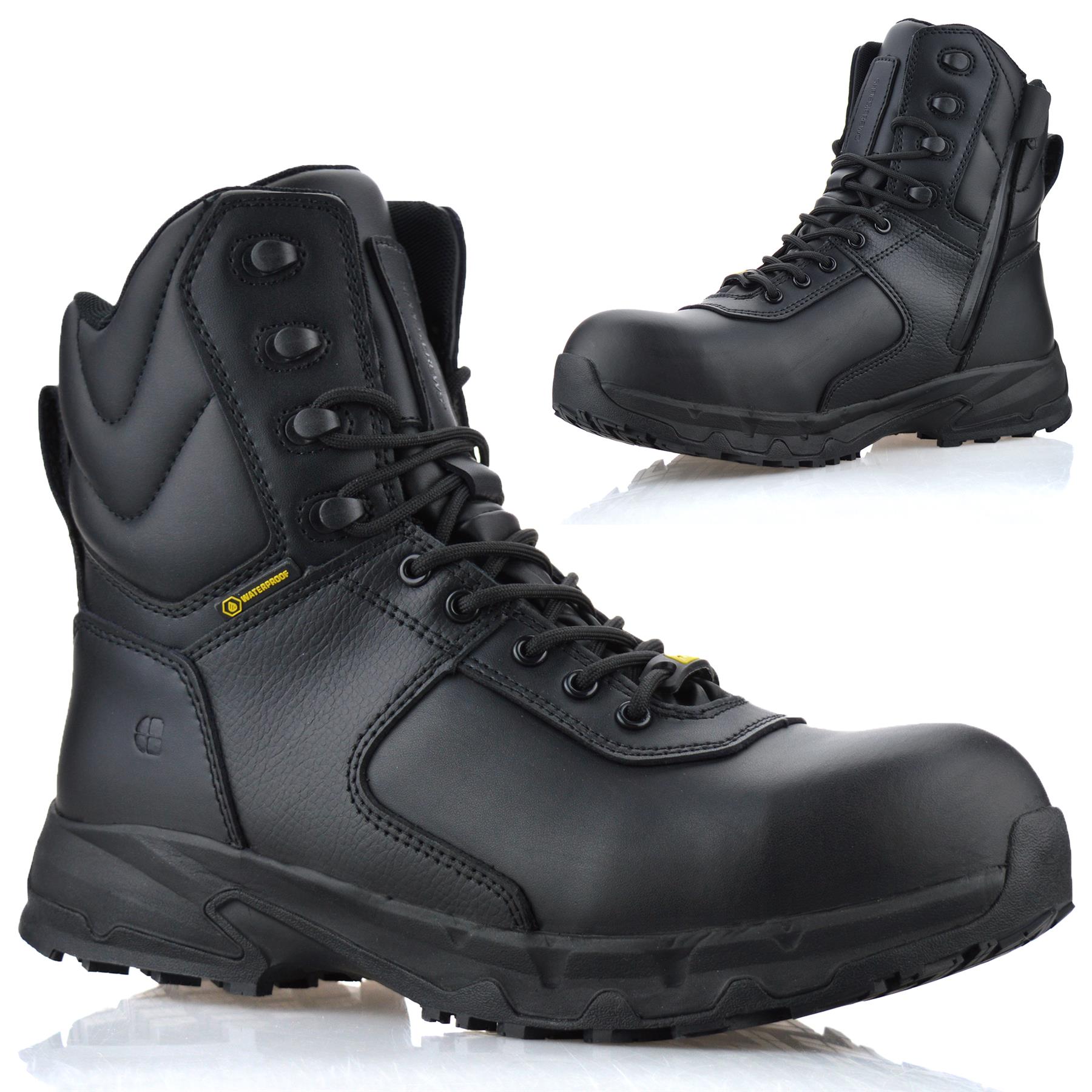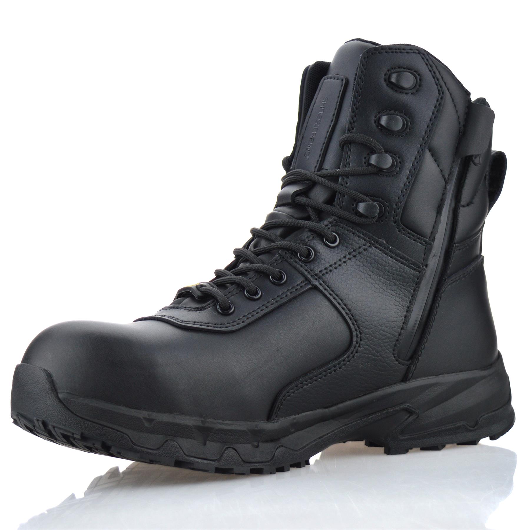 SHOES FOR CREW - Mens Leather Zip Up Army Combat Safety Steel Toe Cap Work Ankle Boots Shoes Size : High quality boxed, leather upper, lightweight Composite safety toe for protection from impact and compression. Zip fastening for easy on and off. Waterproof design to keep your feet dry. Removable cushioned insole for added comfort. Superior slip-resistant outsole with Tripguard for traction on wet and slippery surfaces. EVA midsole material for lightweight cushioning. CE certified to EN ISO 20345:2011 S3 SRC ESD standards (RRP £95)