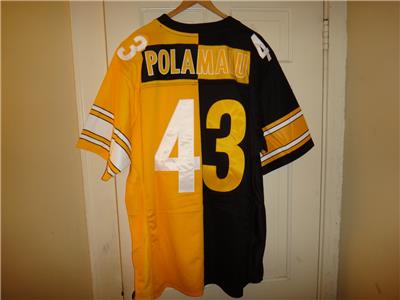 Men's Big Size Troy Polamalu 2005 Mitchell & Ness Pittsburgh Steelers NFL Throwback Black/Gold Split Legacy jersey. New with tags, sealed in original plastic bag.
