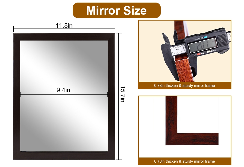 - Sturdy Frame:Embedded in widen and thicken frame and reinforced with solid backing,this glass mirror is definitely in great protection. Sturdy and durable material expands service life.