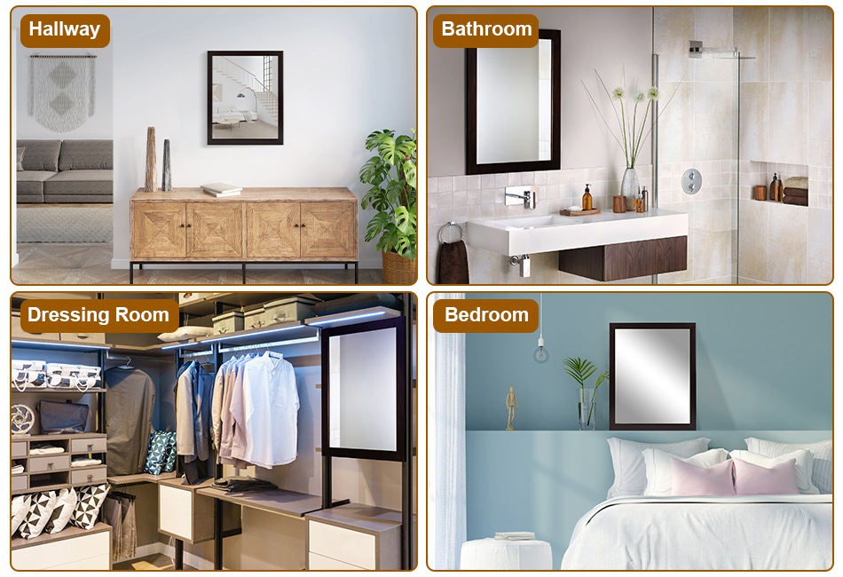 - Classic Design:Our rectangular-shape mirror emits an artistic display on its own. The classic frame adds more sophistication to your home. You can hang it in bathroom,bedroom,dressing room or hallway.