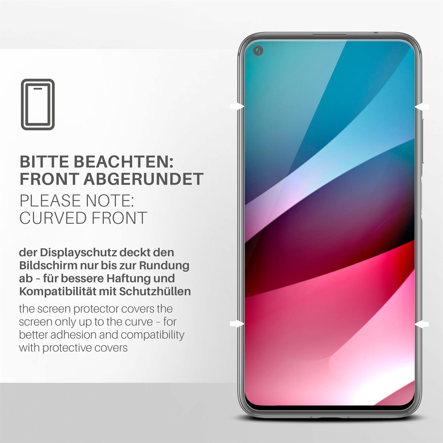 Das Frontglas ist passgenau für das Huawei nova 5T - exakt auf die gerade Fläche angepasst. Die Kanten und Aussparungen der Handyfolie sind sauber und präzise verarbeitet