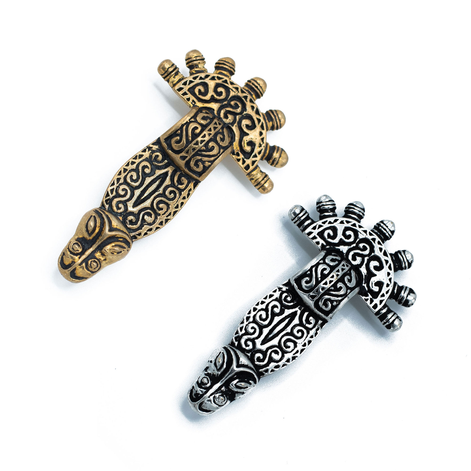 Sofort Kauf Wikinger Buckelfibel aus Birka mit Pferdeköpfen Mittelalter Schmuck Accessoires