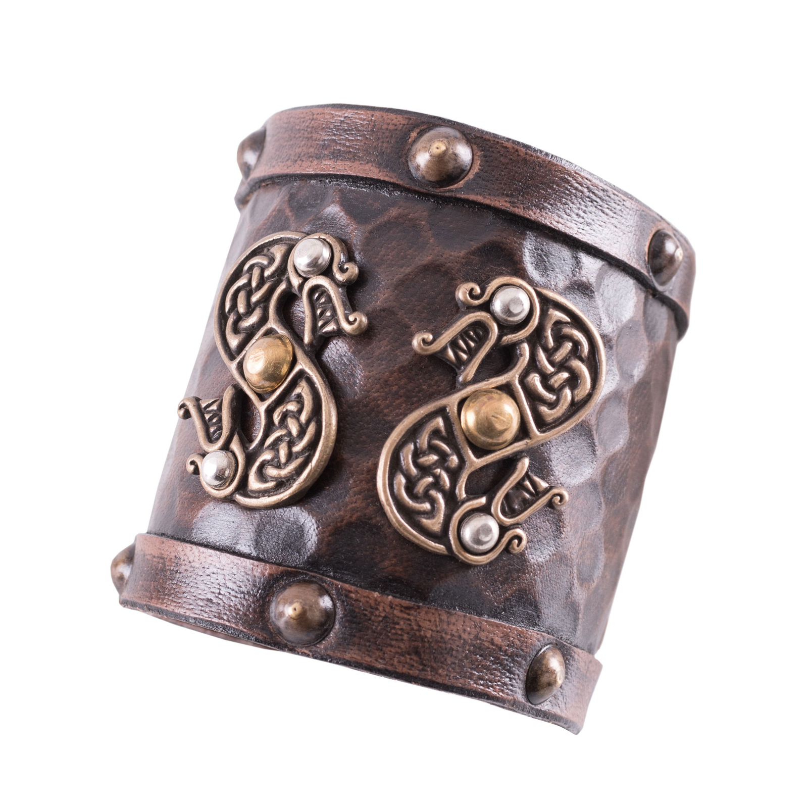 Sofort Kauf Armband aus Leder mit Zweiköpfigen Drachen Lederarmband Mittelalterarmband