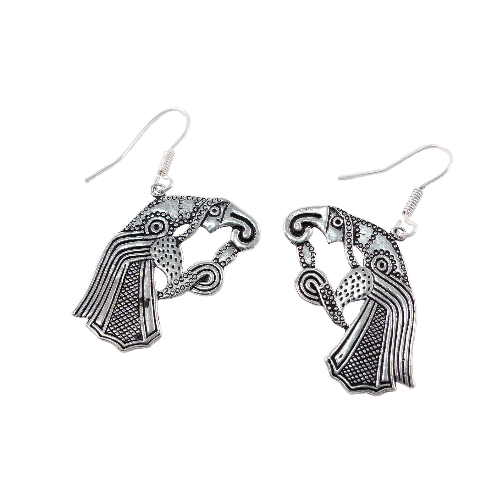 Sofort Kauf Ohrringe versilbert "Vendel-Raben" - Paar mittelalterliche Ohrringe Raben