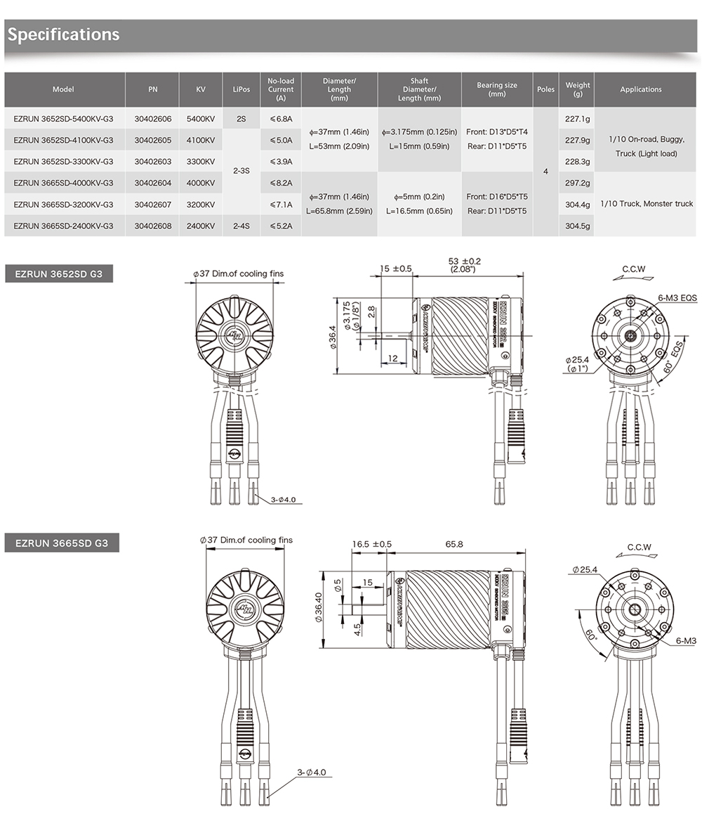 HobbyWing EZRUN G3 Brushless RC Motor 3652 3665 and MAX10 G2 ESC 80A 140A suitable for For 1/10 Scale RC Monster Buggy Truck Car.The evolution of a sensored motor,increases performance.The EzRun 3652/3665 SD G3 features an improved waterproof sensored cable interface and an upgraded sensored mode to achieve motor temperature protection and perfectly matches.Compared with the previous generation motor, the output power and efficiency are increased by more than 3%. Under the same load temperature is effectively reduced.