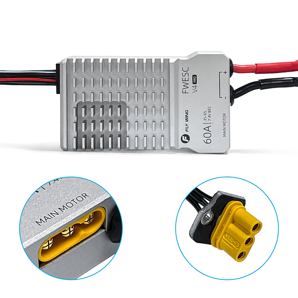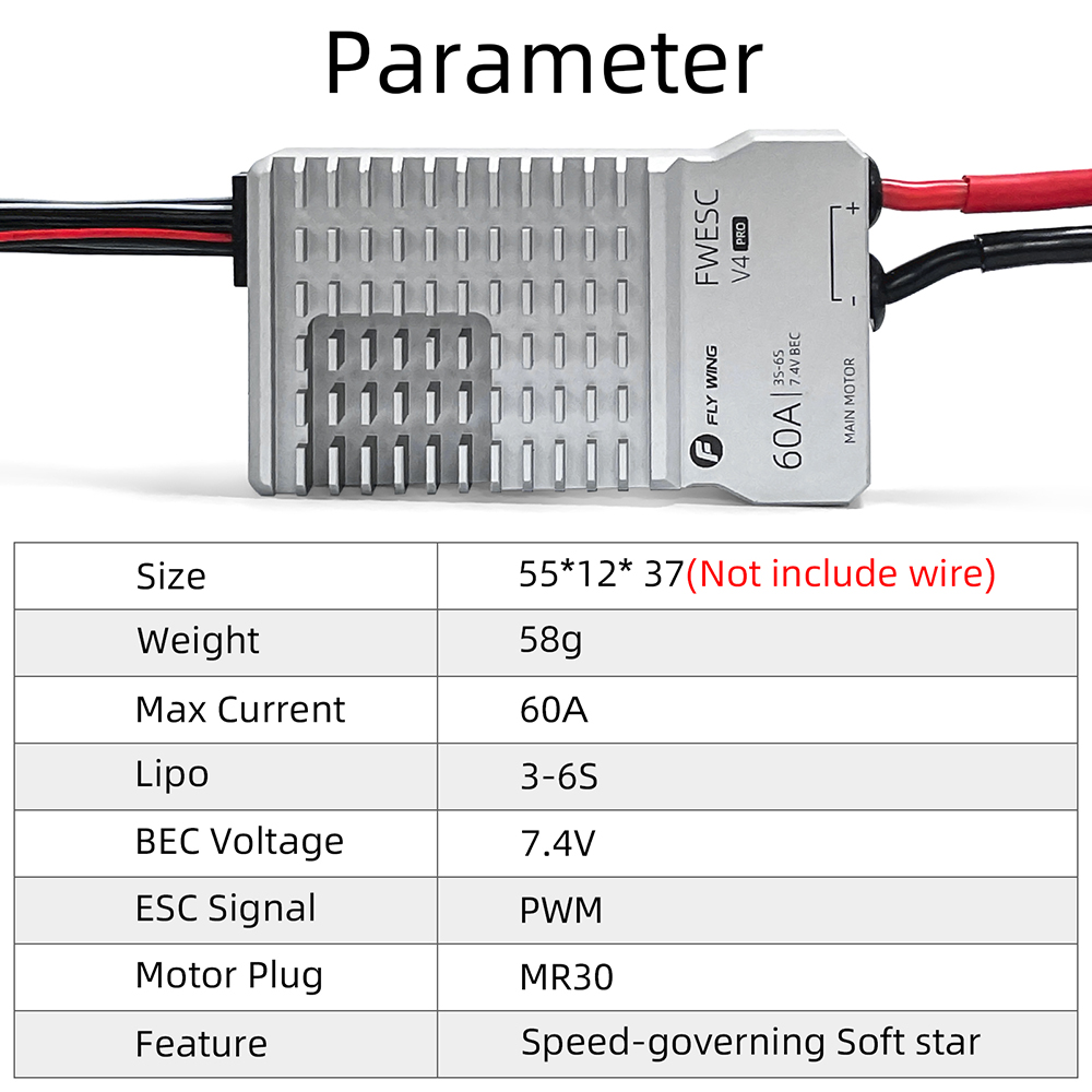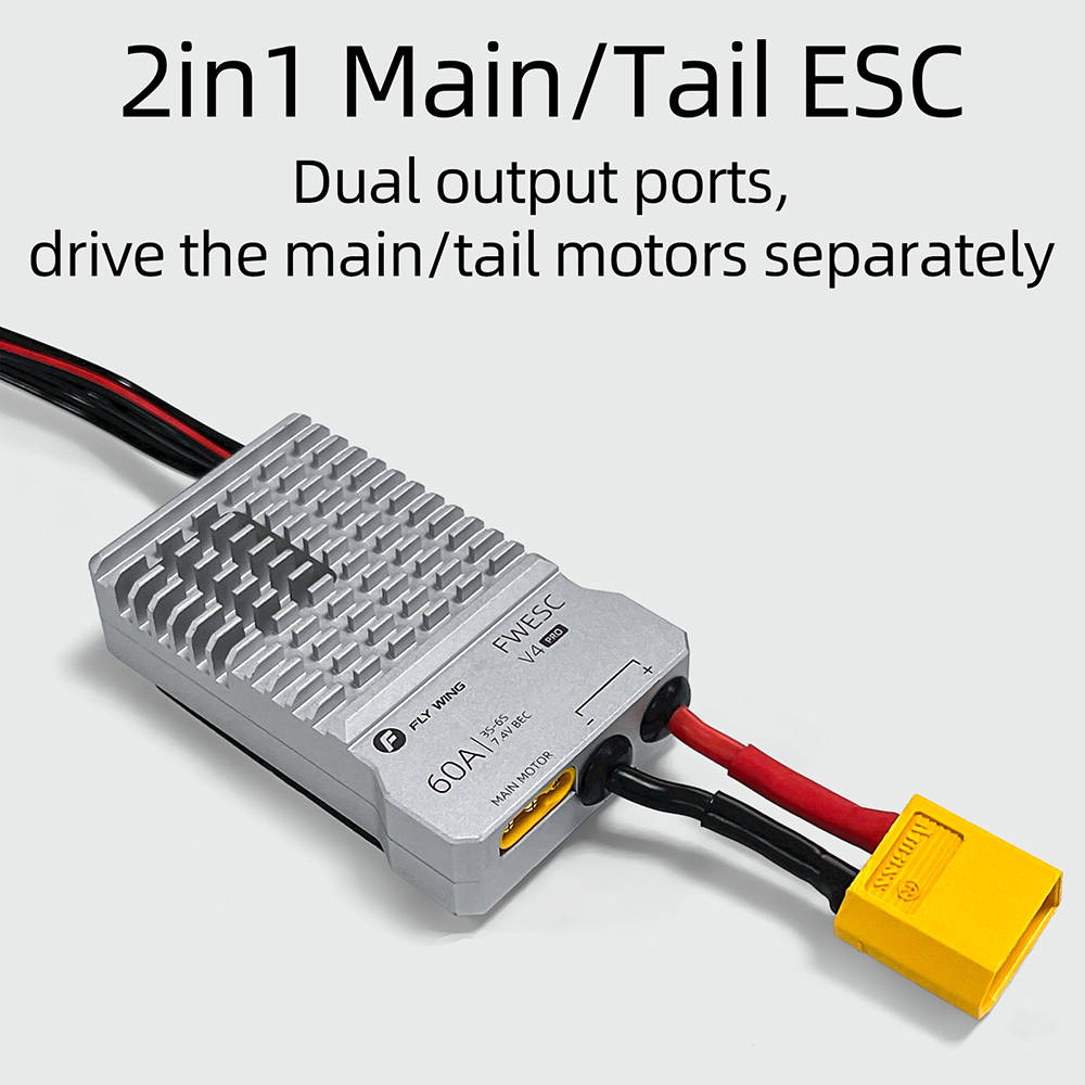 FLY WING 3-6S ESC equipped with 32-bit dual-processing. Using helicopter special electric adjustment , which enables the helicopter to maintain super fast response ability in the fierce 3D flight.Excellent constant speed effect enables the whole flight process to maintain consistent power output without turning