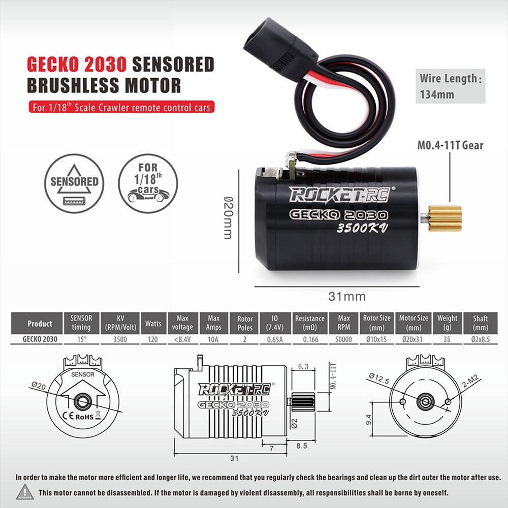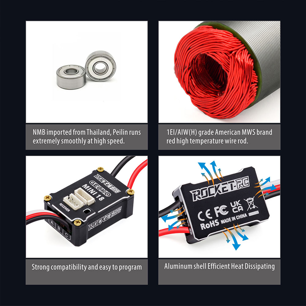 The RC motor ESC combo is suitable for TRX4M Upgrade 1/18 Scale Rock Crawler Car. Heat-resistance running motors allow faster speeds, longer runtime, and extending motor life.