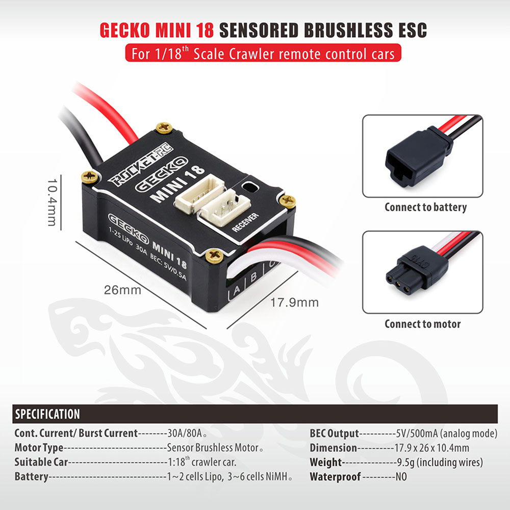 Specially designed for RC Crawler car with excellent start-up, acceleration and linearity features.
