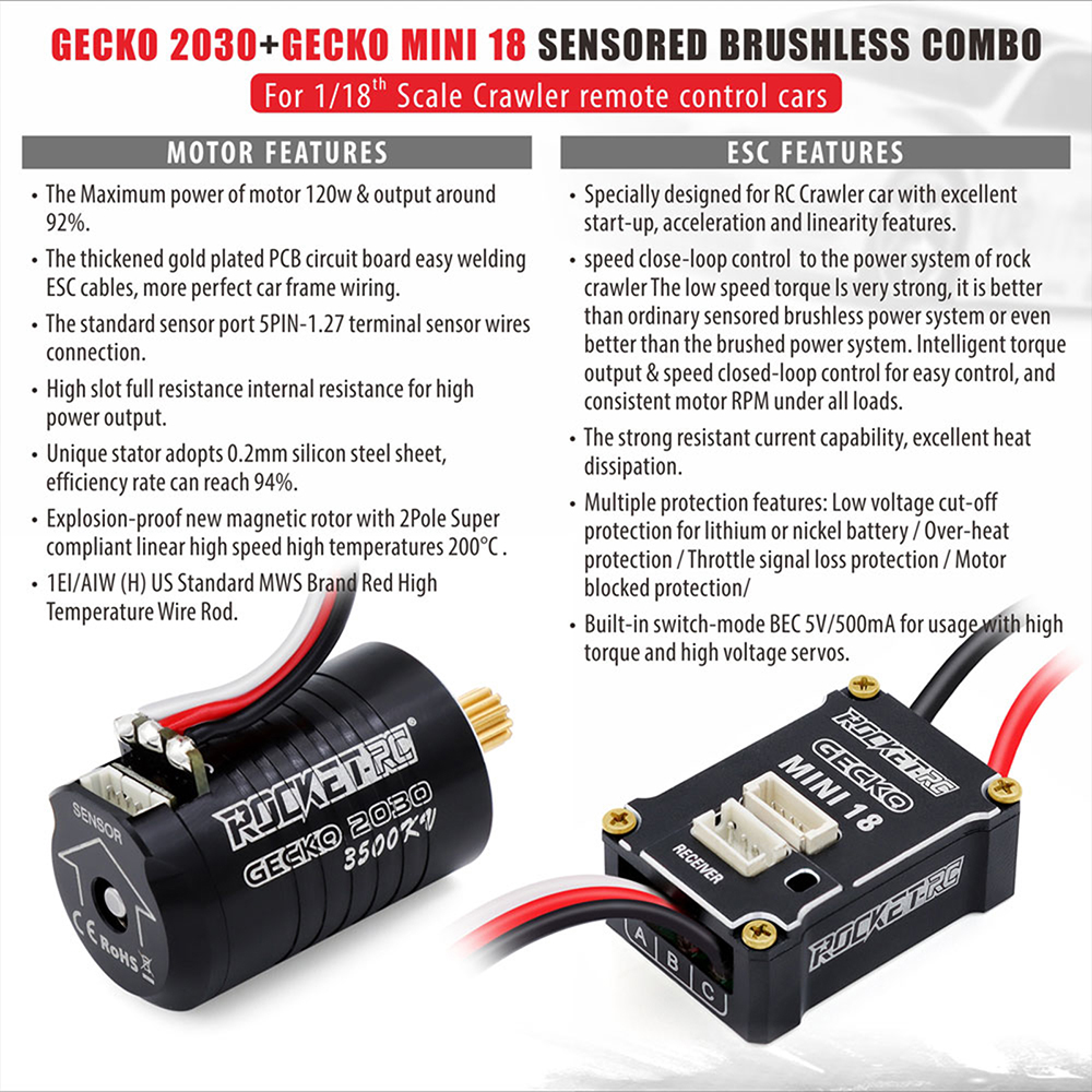 Rocket-RC Motor ESC Program Card Combo for TRX4M Upgrade RC Car 1/18 Scale Crawler Truck Parts 2030 Sensored Brushless