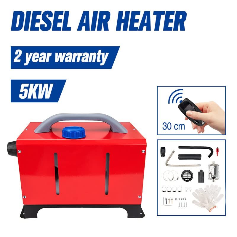 【All-in-one Diesel Air Heater】Heater Power: 5KW; Rated Voltage: 12V; Heater Working Temp: -40℃~+50℃; Oil Pump Working Temp: -40℃~+40℃. Fuel Consumption: 0.18-0.48 (L/H); Fuel Gasoline: Diesel Only. We have got you covered with this diesel air heater to warm your car and remove the windows' frost on cold winter days. With fast heating and low noise, the aluminum heater runs smoothly in any harsh environment.
