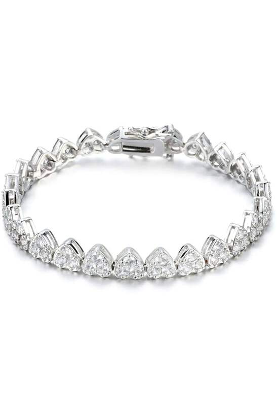 Elevate your style with the ADIRFINE 18K Gold Plated Cubic Zirconia Hearts Tennis Bracelet. Crafted with exquisite attention to detail, this bracelet features 7mm width and is available in 7.25" and 8" lengths, making it the perfect fit for any wrist. Each heart-shaped cubic zirconia stone dazzles with AAA quality, creating a statement piece that will sparkle on your wrist. The 18K gold plating adds a touch of opulence, while the lead and nickel-free material ensures comfortable and hypoallergenic wear. Whether you're dressing up for a special occasion or adding a touch of glamour to your everyday look, this bracelet is a must-have in your jewelry collection. Each bracelet comes beautifully packaged in a gift box, making it a perfect present for your loved ones. Don't miss the chance to own this timeless and exquisite piece. Order now and showcase your impeccable taste with our ADIRFINE 18K Gold Plated Cubic Zirconia Hearts Tennis Bracelet.