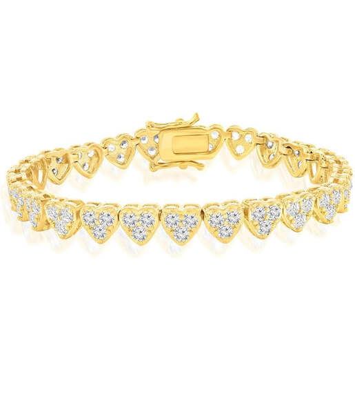 ADIRFINE 18K Gold Plated Cubic Zirconia Hearts Tennis Bracelet