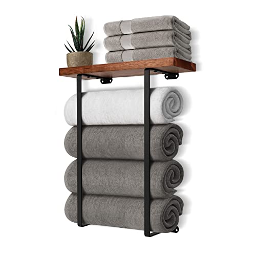 - Easy To Install: The top wood shelf features 4 pre-drilled holes, it's much easier to attach the bracket and shelf without measuring. The bathroom towel rack comes with the required mounting hardware,helping to complete the installation within 5 min.