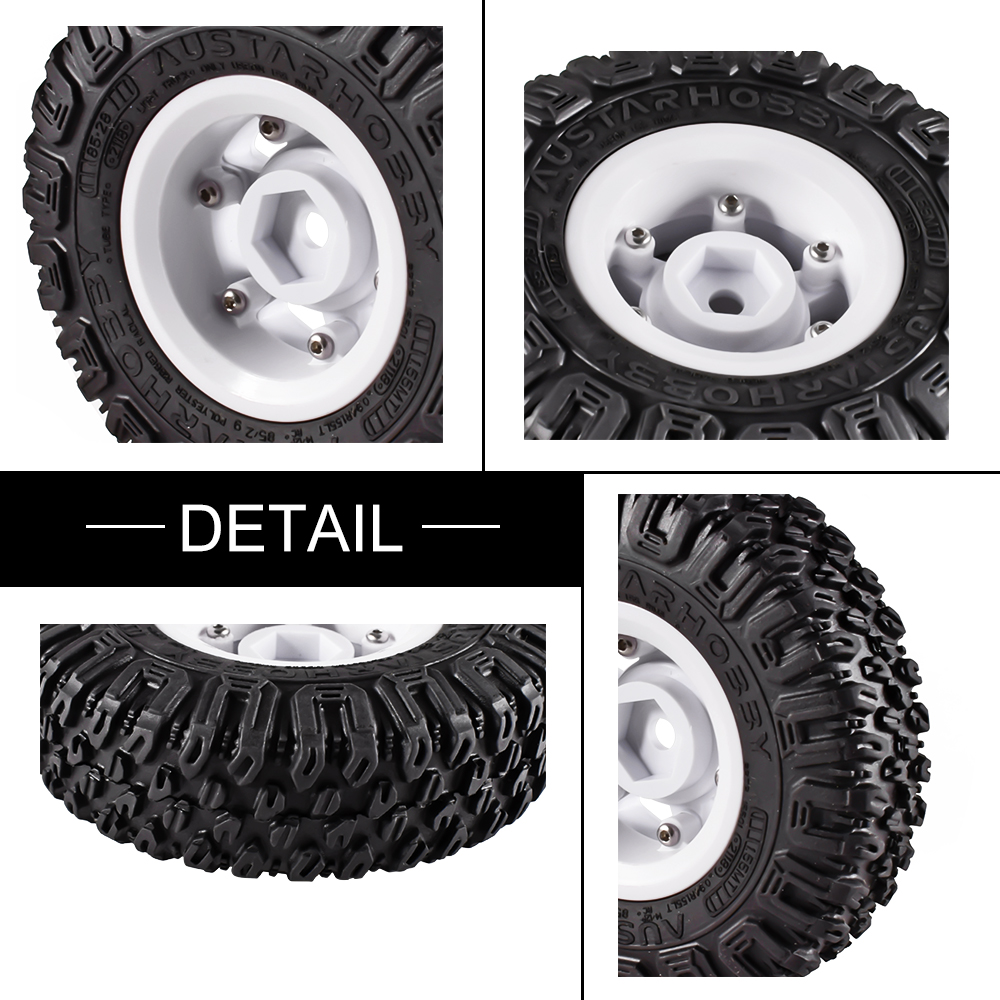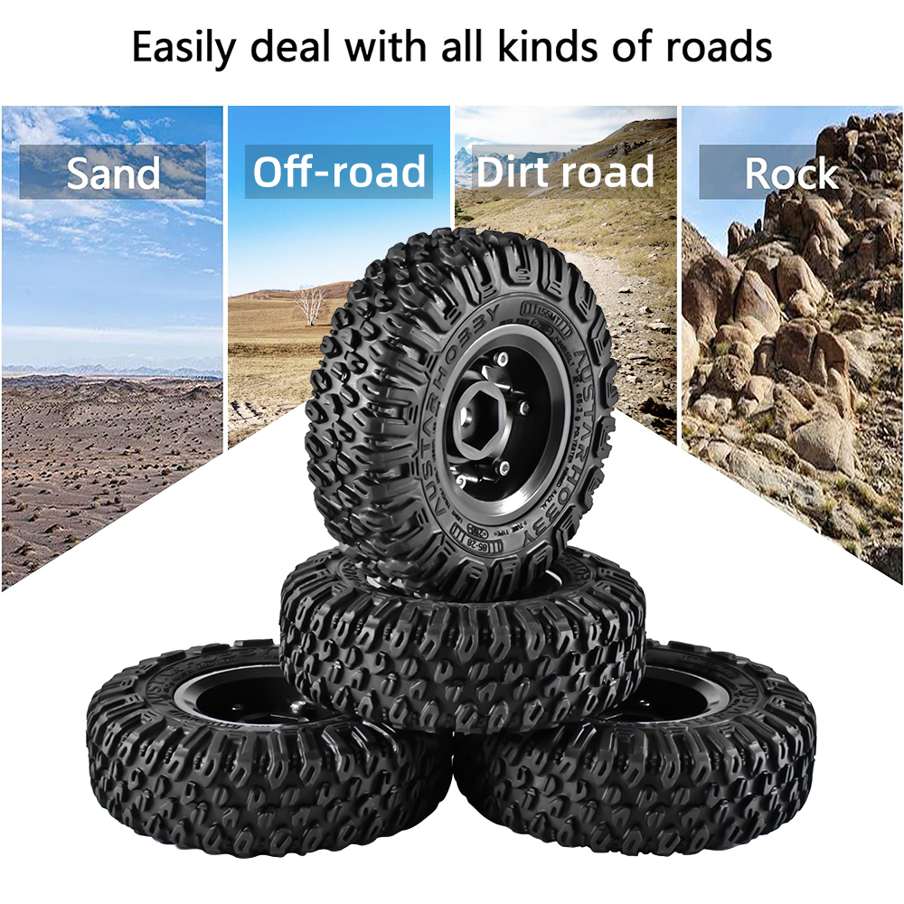 This is Pre-glued RC Off-Road Buggy wheels and tires. Great grip on a variety of terrains. 1.55 Inch high-quality car parts that can replace old one well and decorate your RC car. Suits for 1/10 RC Crawler Car.