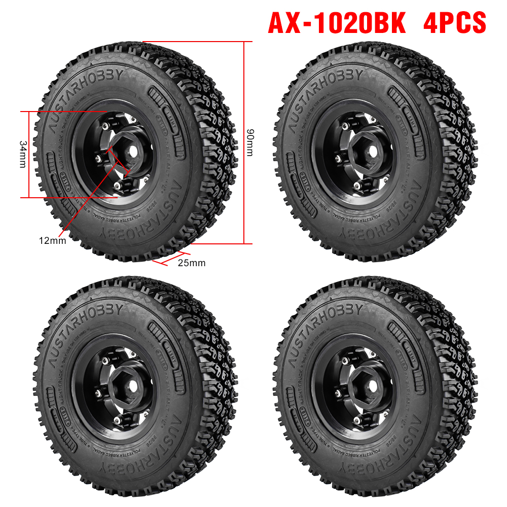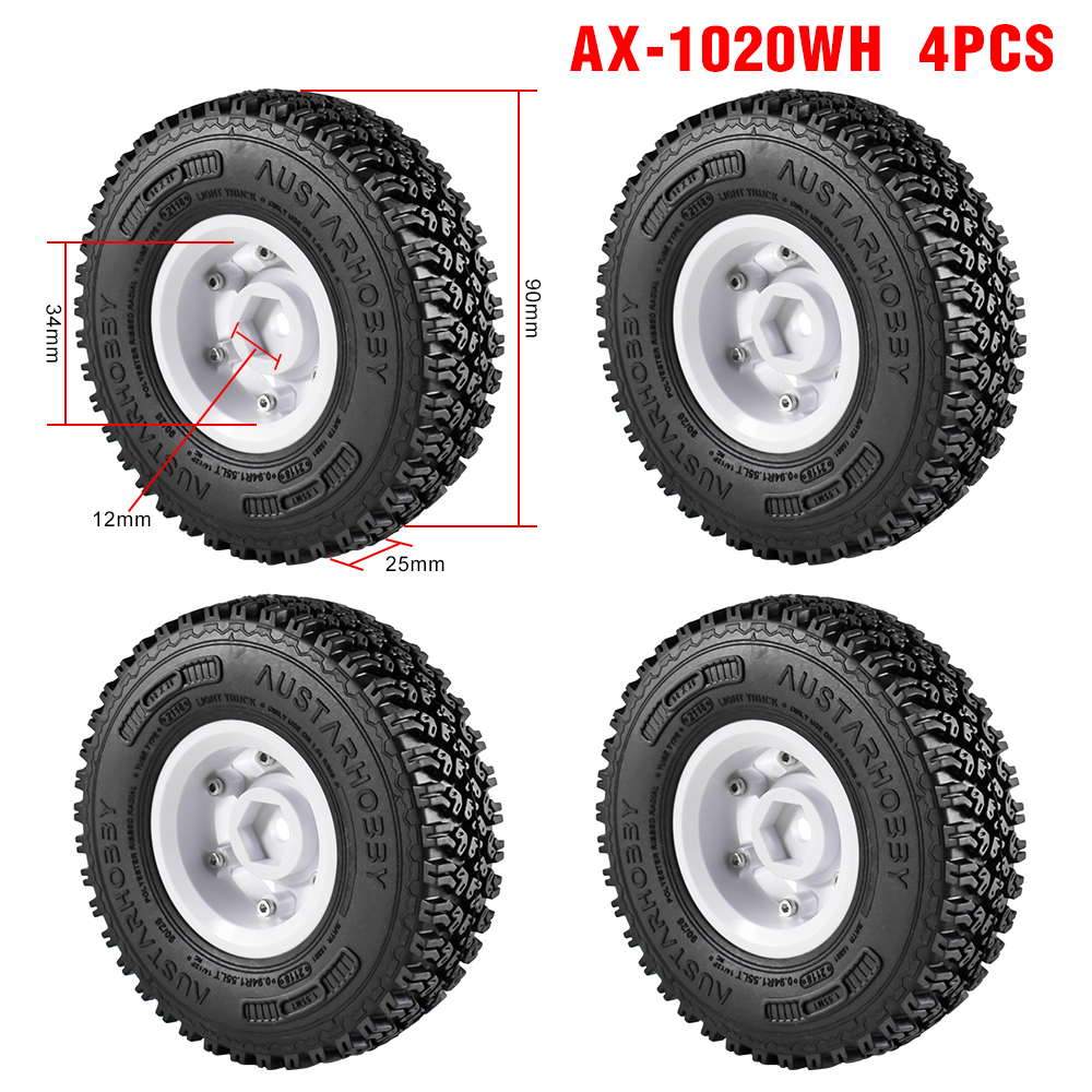 AUSTARHOBBY RC Tires 1.55inch Plastic Wheel Rim Rubber Tyre for 1/10 RC Crawler Car Axial 90069 D90 TF2 Tamiya CC01 LC70 Pre-Glued Upgrade Parts