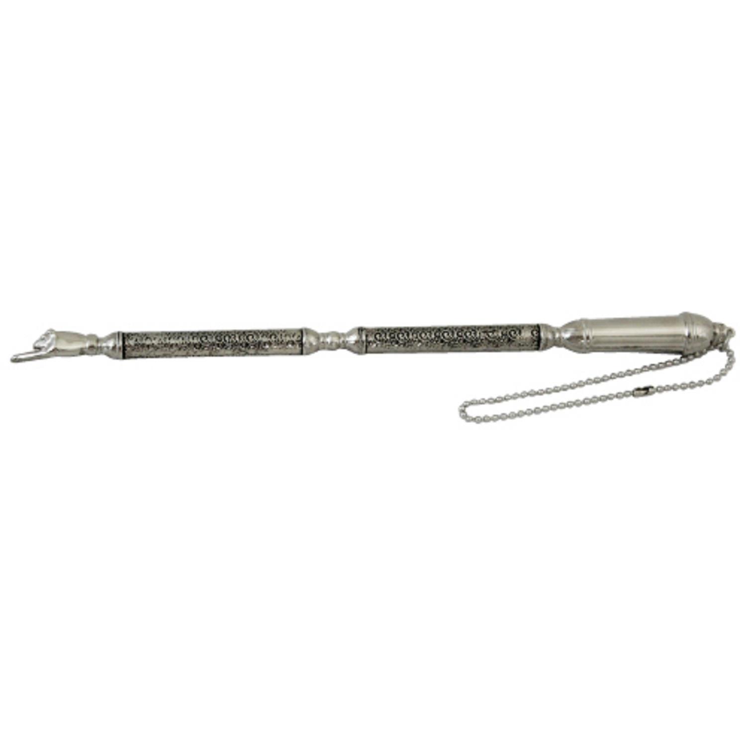 The Yad Torah Pointer is a long rod shape that is used for pointing out and following along with the words from the Torah reading. The traditional Torah pointers usually have a pointing finger of a hand at the end of the long stick.
