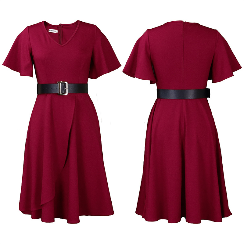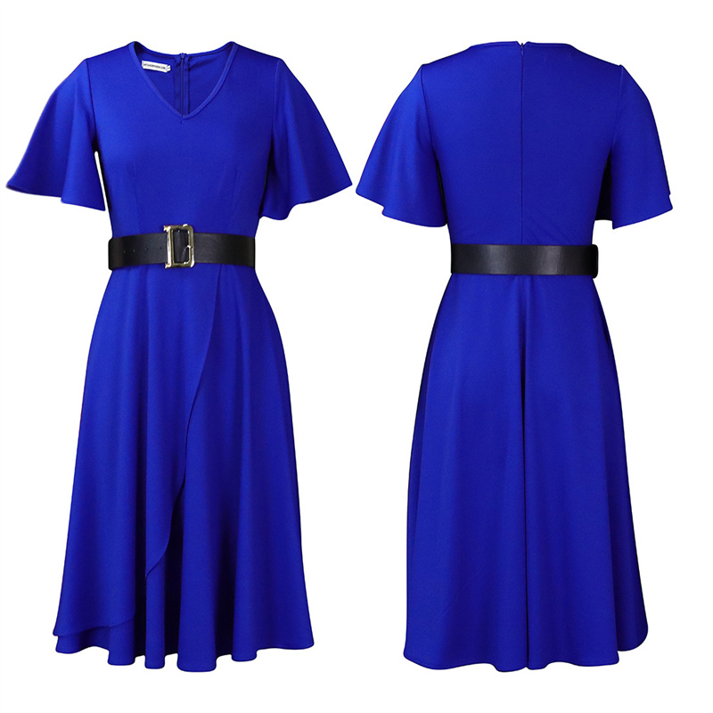 Solid Color Bell Sleeve Fashion Large Size Dress Summer Women's Dress