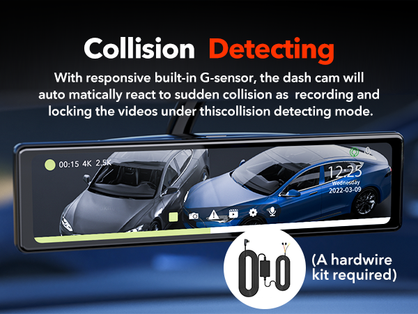 EXCLUSIVE CAMERA: FRONT 4K + REAR 2.5K - With a built-in HI-SILICON chip, the rear view mirror backup camera owns the front 4K resolution and 2.5K (2560 X 1440) rearview camera. You can get HD images and videos from both front and rear dashcams in higher resolution, and a 2.5K rear camera also provide more remarkable details than 1080P. The six-layer glass lens of the mirror camera enhances night vision in a dark environment. Small text can also be clearly displayed.