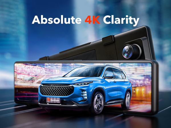 EXCLUSIVE CAMERA: FRONT 4K + REAR 2.5K - With a built-in HI-SILICON chip, the rear view mirror backup camera owns the front 4K resolution and 2.5K (2560 X 1440) rearview camera. You can get HD images and videos from both front and rear dashcams in higher resolution, and a 2.5K rear camera also provide more remarkable details than 1080P. The six-layer glass lens of the mirror camera enhances night vision in a dark environment. Small text can also be clearly displayed.