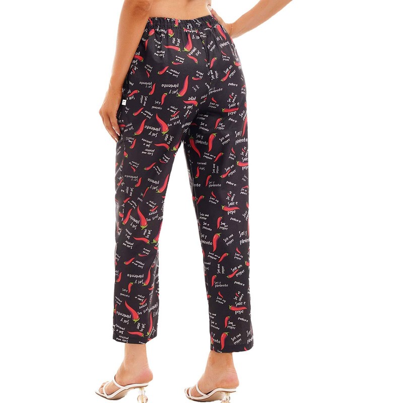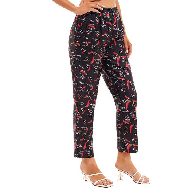 Womens Mens Chili Printed Chef Pants Hotel Kitchen Uniform Drawstring Elastic Waist Trousers.
