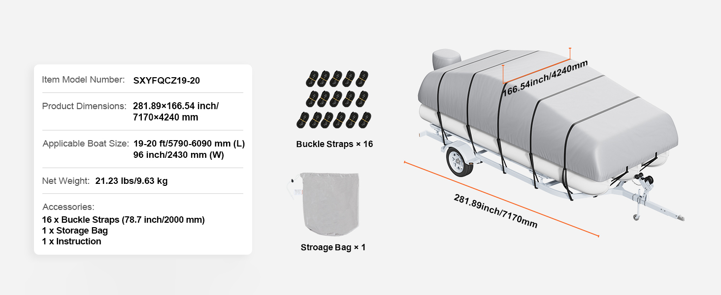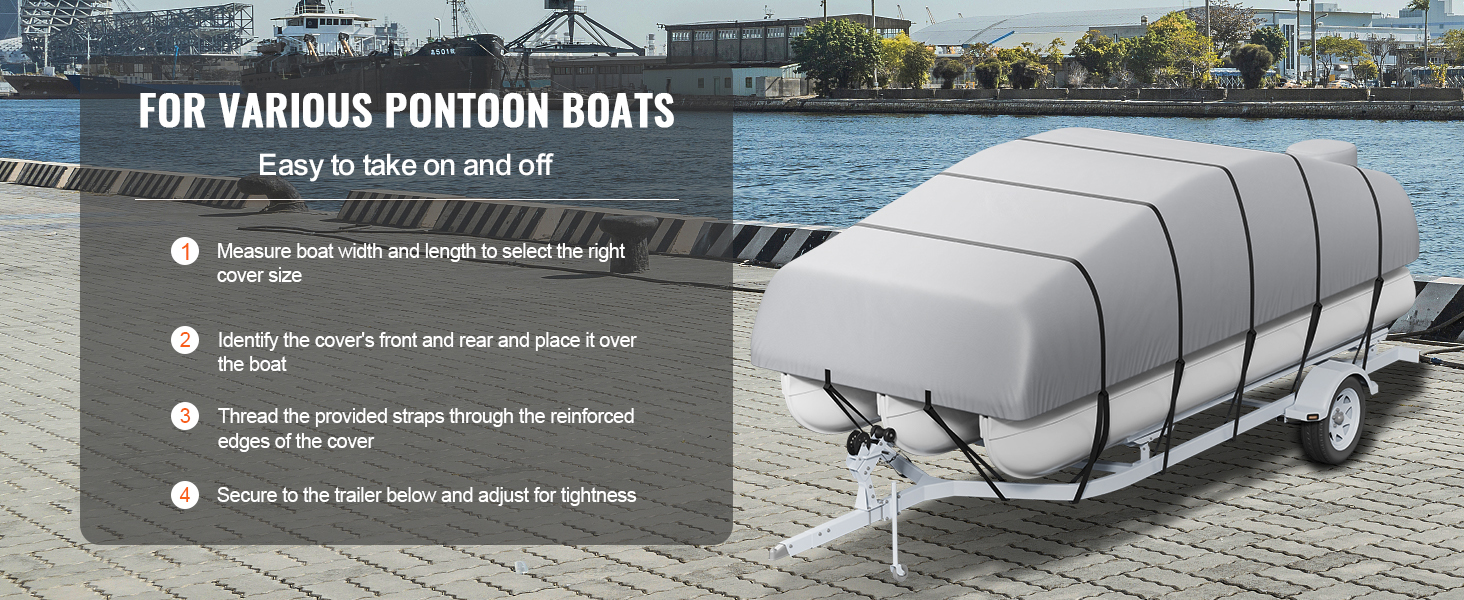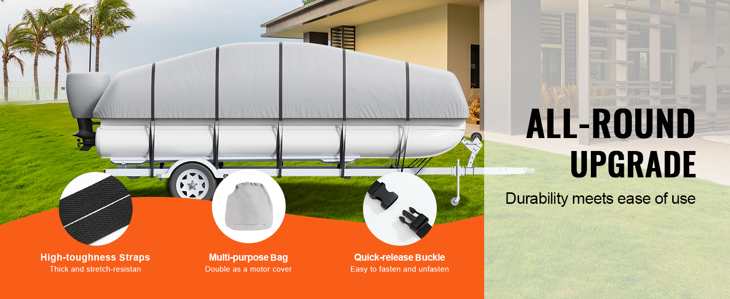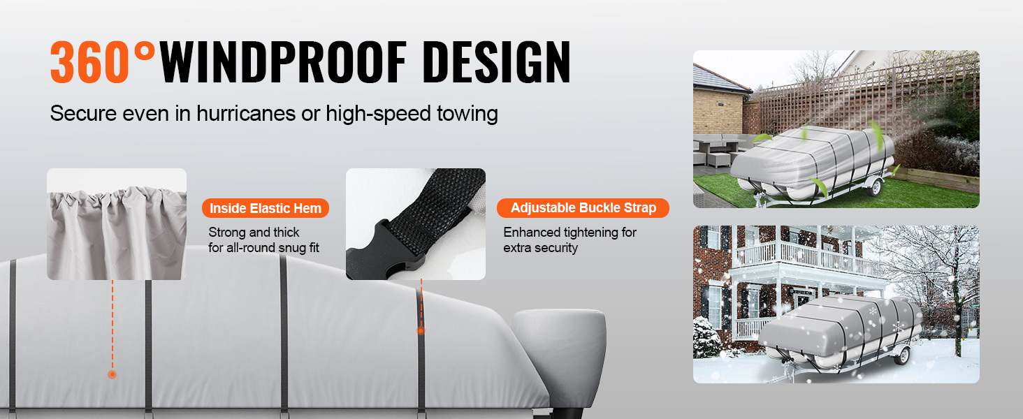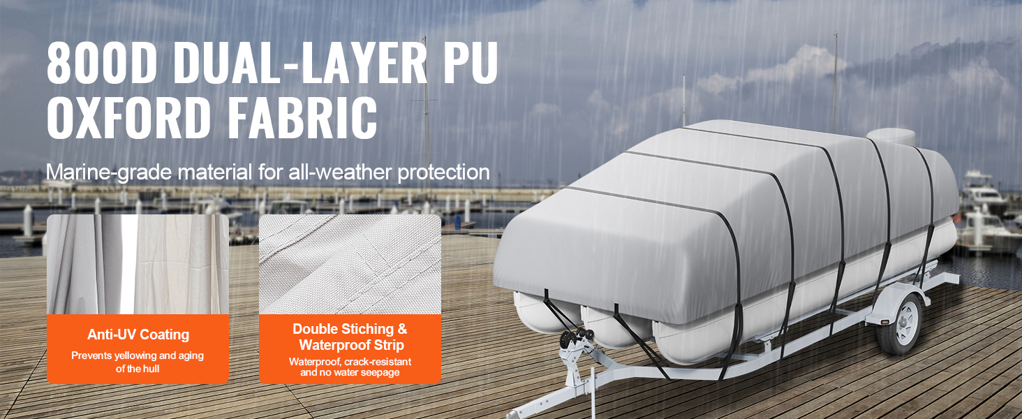 Constructed from high-density 800D Oxford cloth, and the double stiching and waterproof strip design allow our boat cover stands strong against rain, snow, and wear. The waterproof and UV-resistant coating amplifies protection against seawater corrosion and sun damage and promotes longevity.