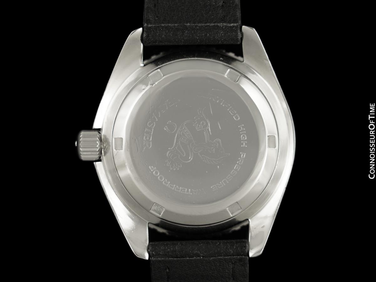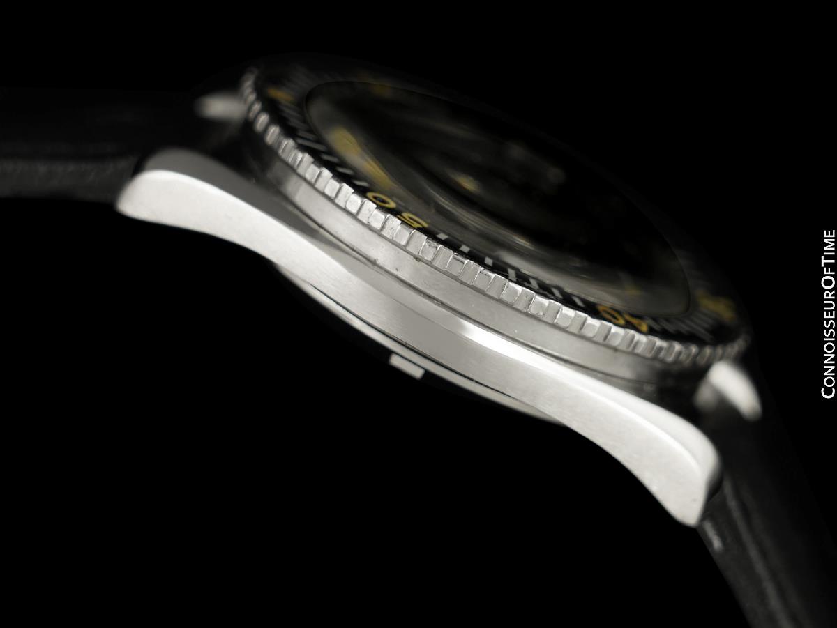 Case: Stainless steel, three-body, polished and brushed, screwed-down case back on the O joint, revolving bezel graduated to "60" for tracking dive times, 43mm diameter (13mm thick), back signed "Certified High Pressure"