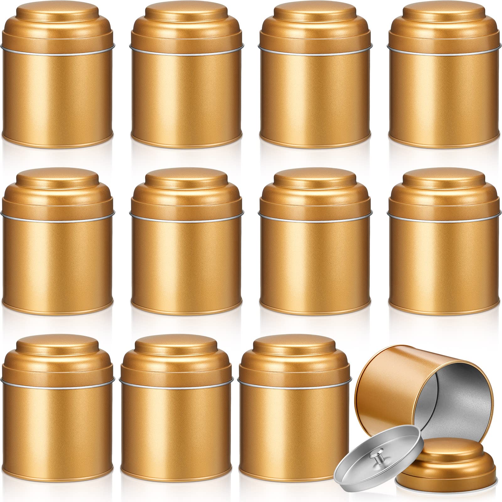 Description Features: Tasty gifts: The loose leaf tea organizer can be applied as gifts for your family, friends, neighbors on Mother's Day, Father's Day, business, anniversaries, festivals and other occasions to express your concern and love. Enough to store: The capacity of the tin canisters with lids is about 8 oz, which is enough to store your tea, spices, sugar, biscuits, coffee and more. It is small in size, easy to carry and suitable for travel and business trips. Specifications: Material: metal, chrome plating Color: bronze gold Size: Diameter: about 3 inches/ 7.5 cm Height: about 3.6 inches/ 9 cm Capacity: about 8 oz Package : 12 x Tea tin canister Notes: Manual measurement, please allow slight errors on size. The color may exist a slight difference due to different screen displays.