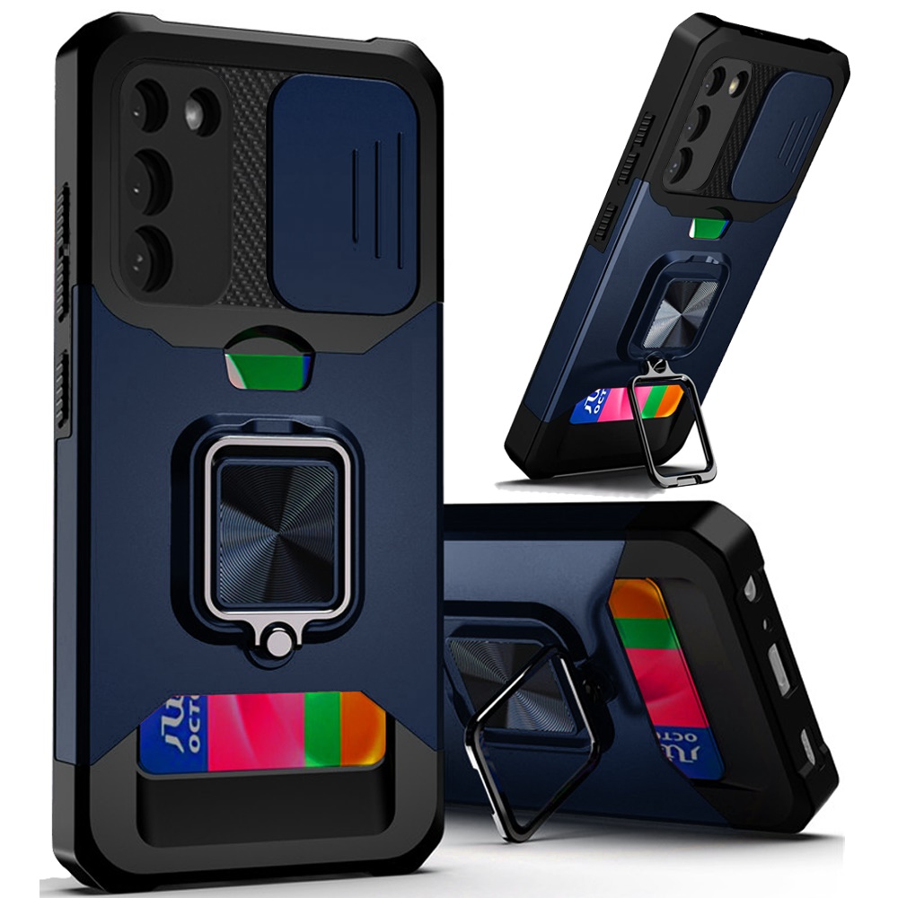 Phone Case for Galaxy S24 Ultra Premium Military Grade Drop Protection with Card Holder Slot and Camera Cover Slide, Heavy Duty Rugged Shockproof Phone Cover Built in Ring Stand Holder