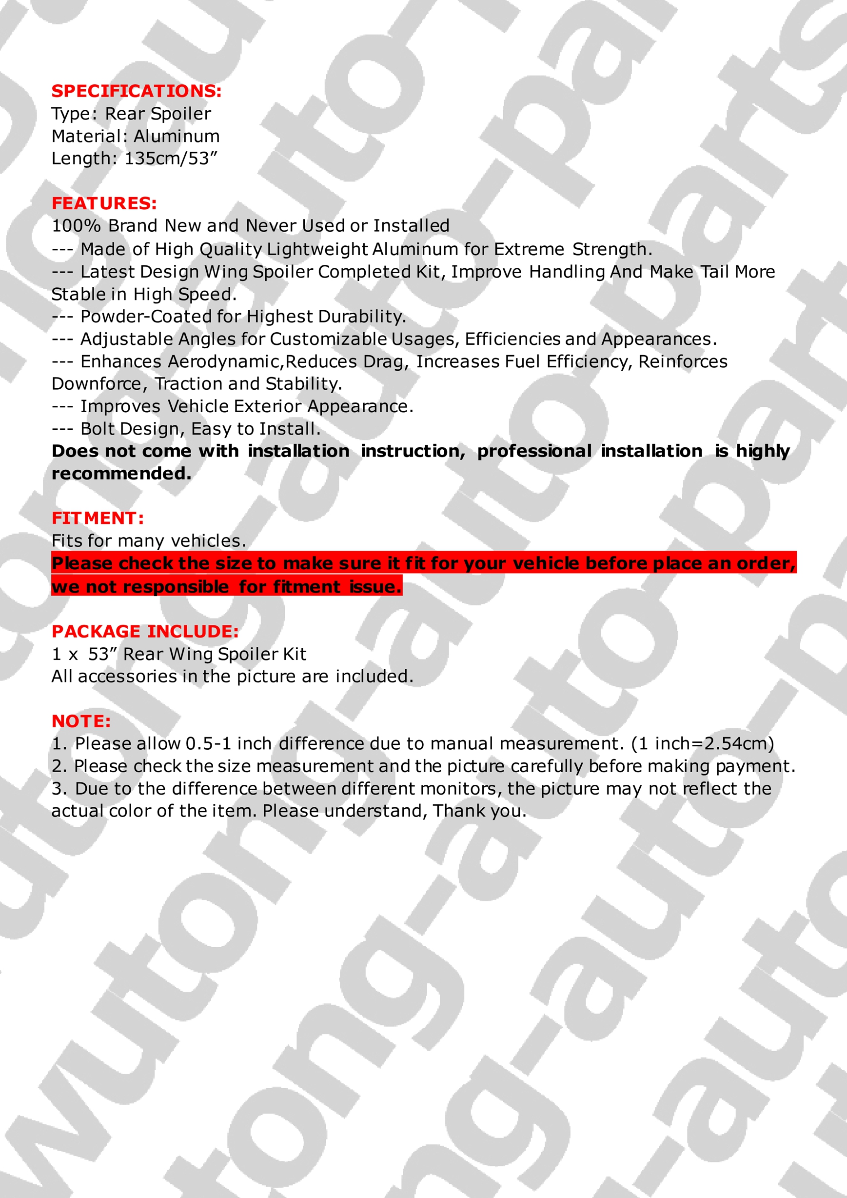 1.Please inspect your order upon receipt.