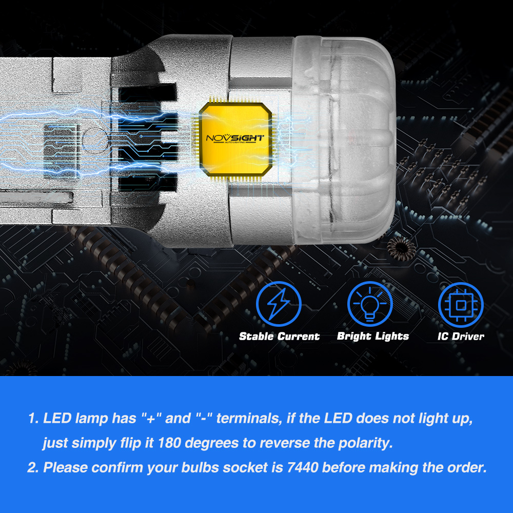 - if your light DOES NOT turn on, disconnect the bulb and flip the socket in order to reverse the polarity (this will not damage your vehicle electrical system in any way). Once you made sure the LED bulb turns on, please proceed to install both bulbs onto your vehicle.