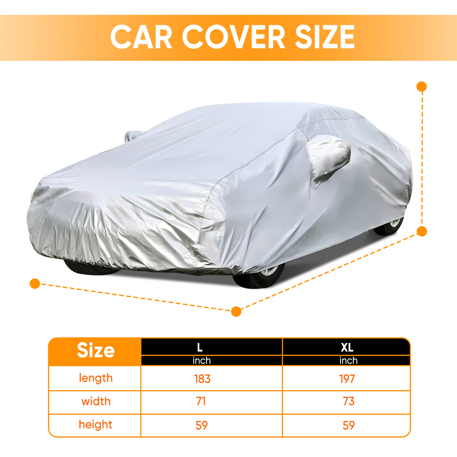 【Car Cover Waterproof All Weather】---No matter sun or snow weather, sun-proof, snow-proof, windproof, dust-proof, Scratch resistant multifunction and protect automotive from dirt, UV pollutants for the whole 4 seasons.
