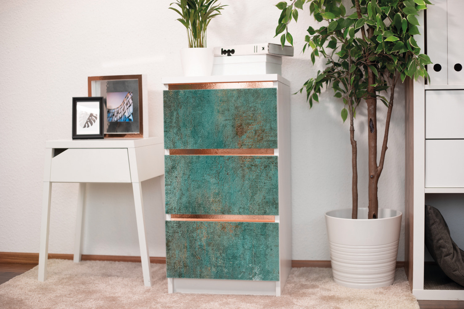 Vor allem Selbstklebefolien in Holzoptik, Betonoptik und Naturmotiven sind gebrauchsfertig und leicht zu verarbeiten.