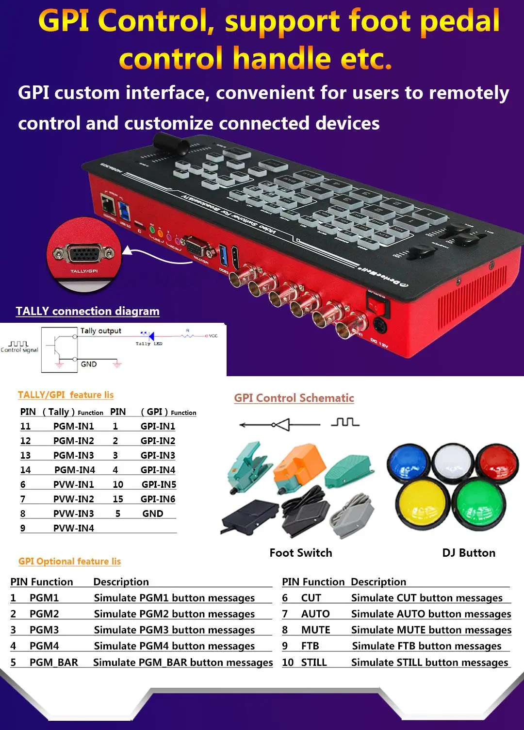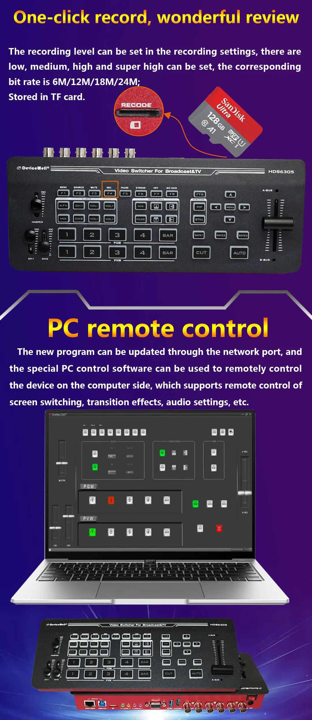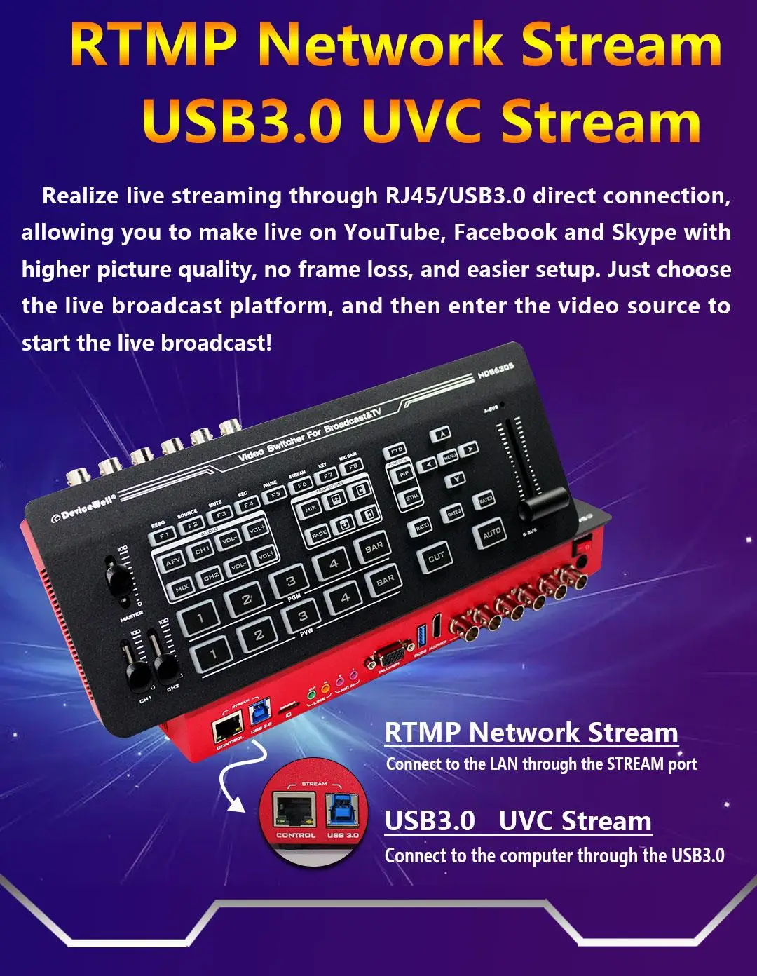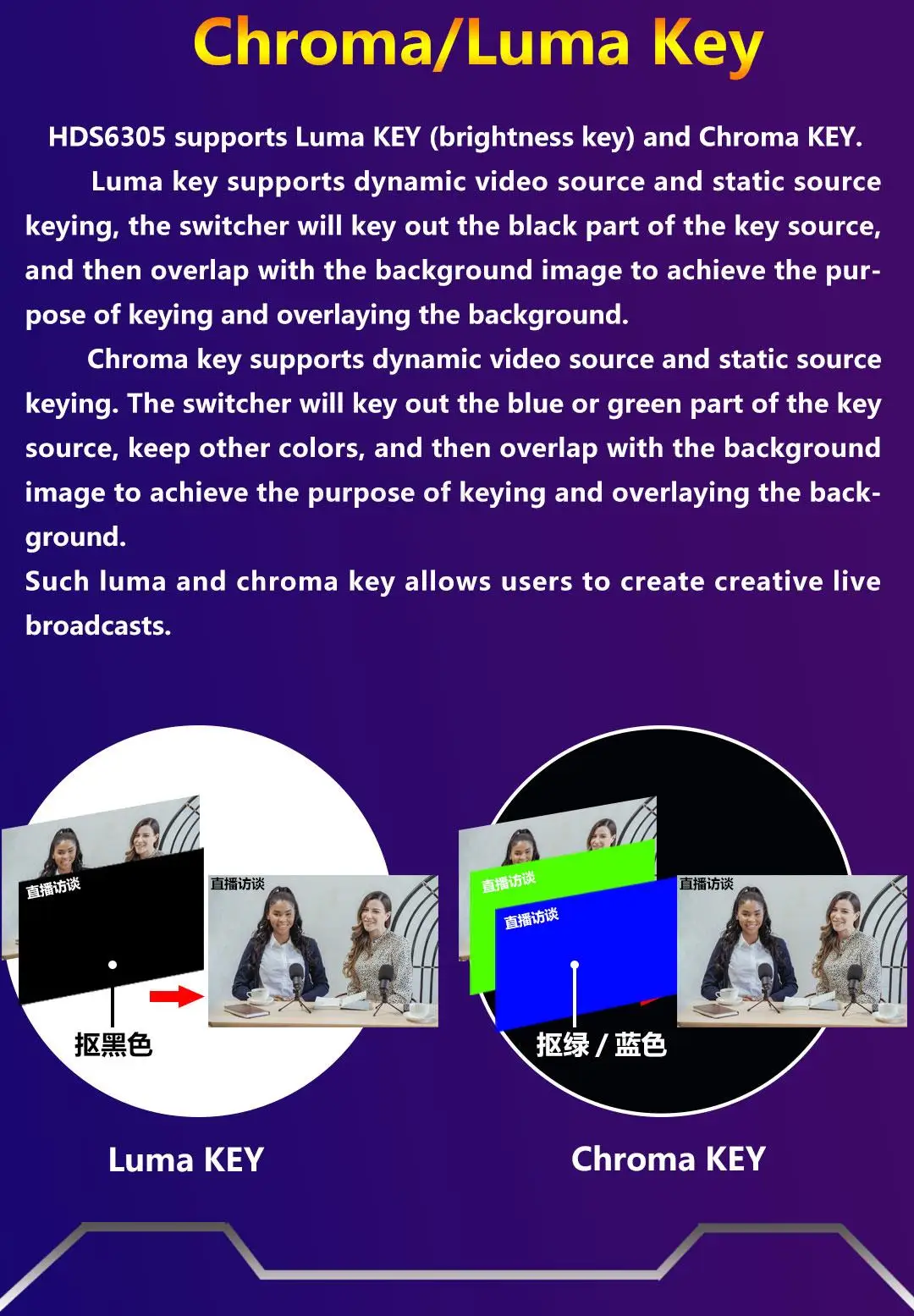 Devicewell HDS6305 4-CH SDI Input Chroma Video Switcher for Broadcast TV Studio