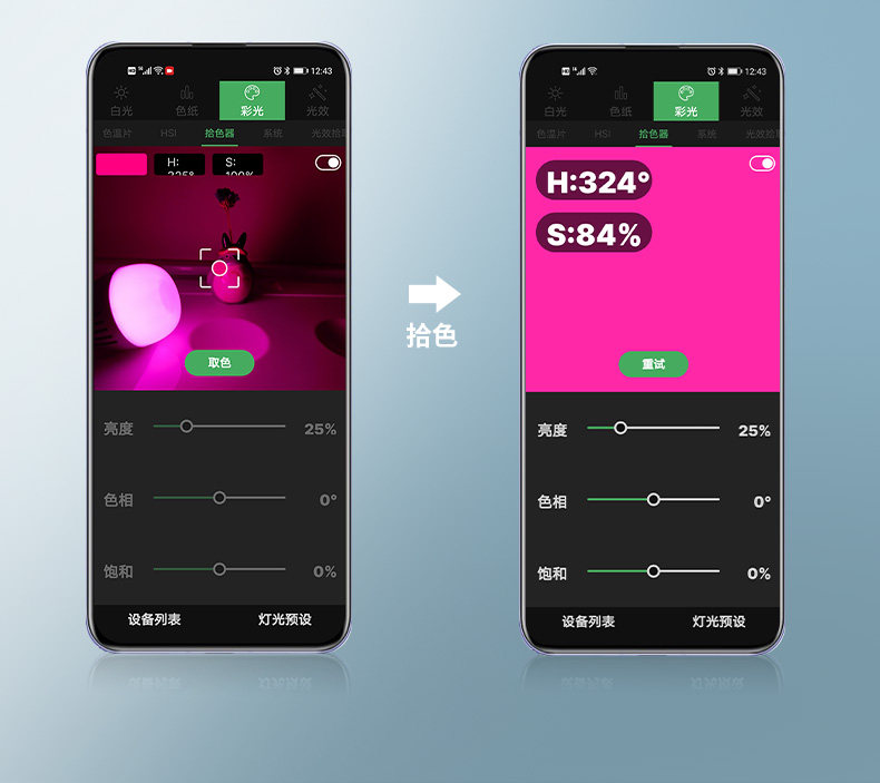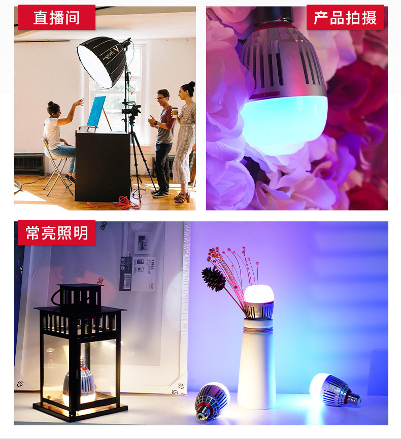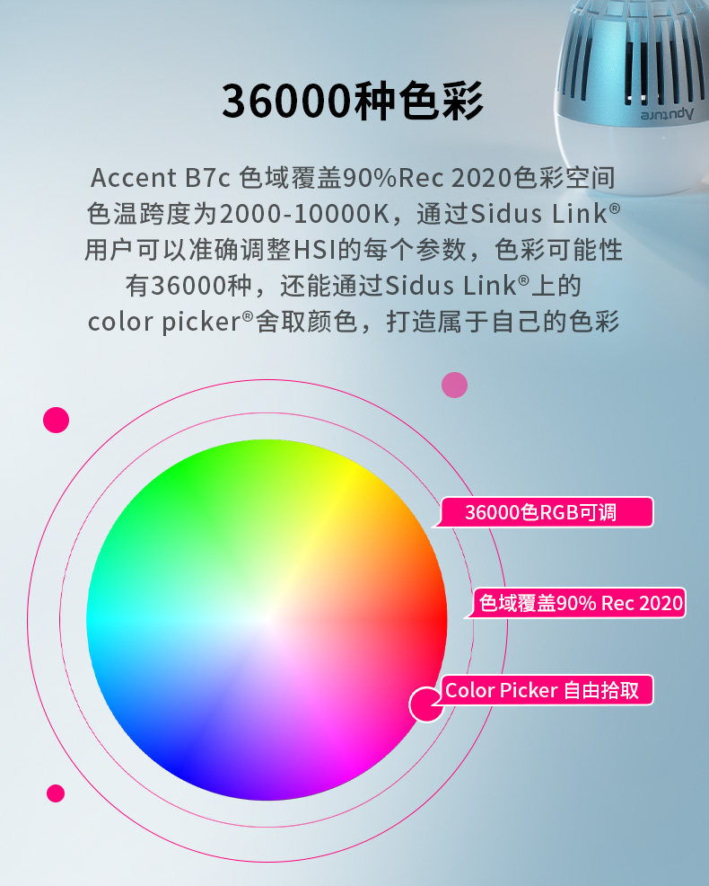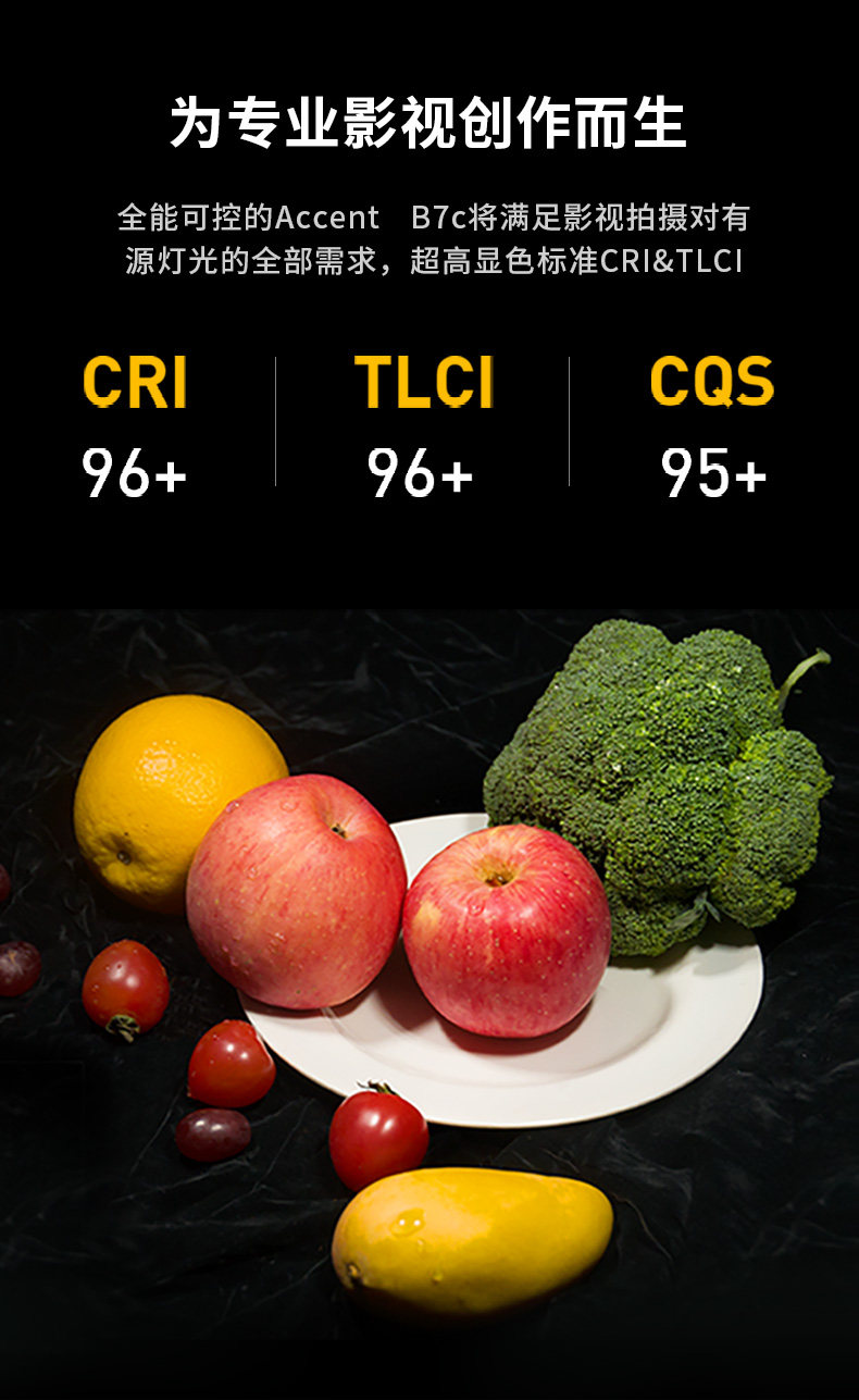 The ultra-high color rendering standard CRI&TLCI color gamut covers 90% of the Rec.2020 color space,The color temperature span is 2000-10000K, built-in 1300mAh battery,