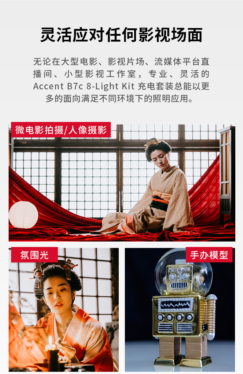 It comes standard with a portable outer film box, creators can carry 8 Accent B7c at the same time, high-strength engineering plastic box shell, anti-cutting and durable, up to 200KG, with high-density lining, it will minimize transportation damage to the lamp. Make shooting easy and worry-free.