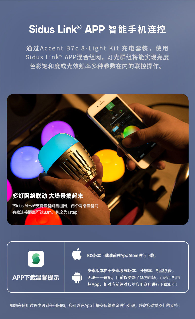 Using Sidus Link® APP hybrid networking, creators only need an Ipad to adjust multiple lighting parameters in real time without any delay. With the Magic Program™ matrix programming function, creators have the ability to program lighting groups, freely define ideal lighting effects, and play with image creativity.