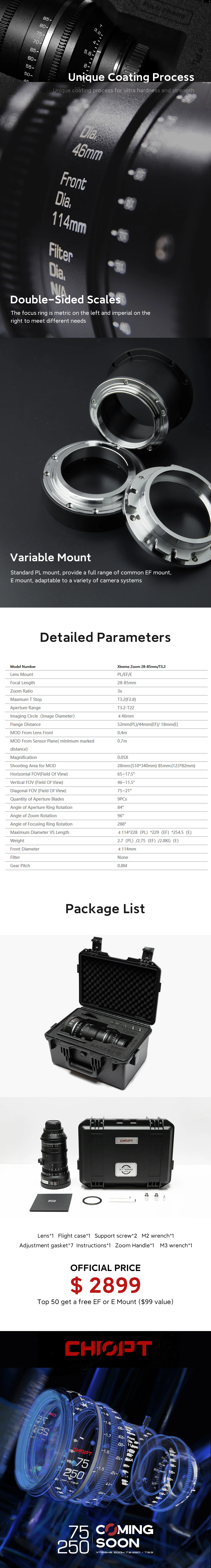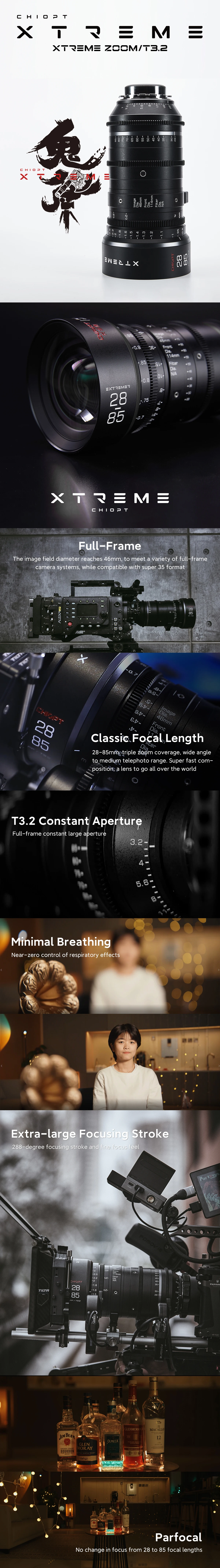 CHIOPT XTREME ZOOM 28-85mm T3.2 Full Frame Cinema Lens for Canon PL/EF Sony E