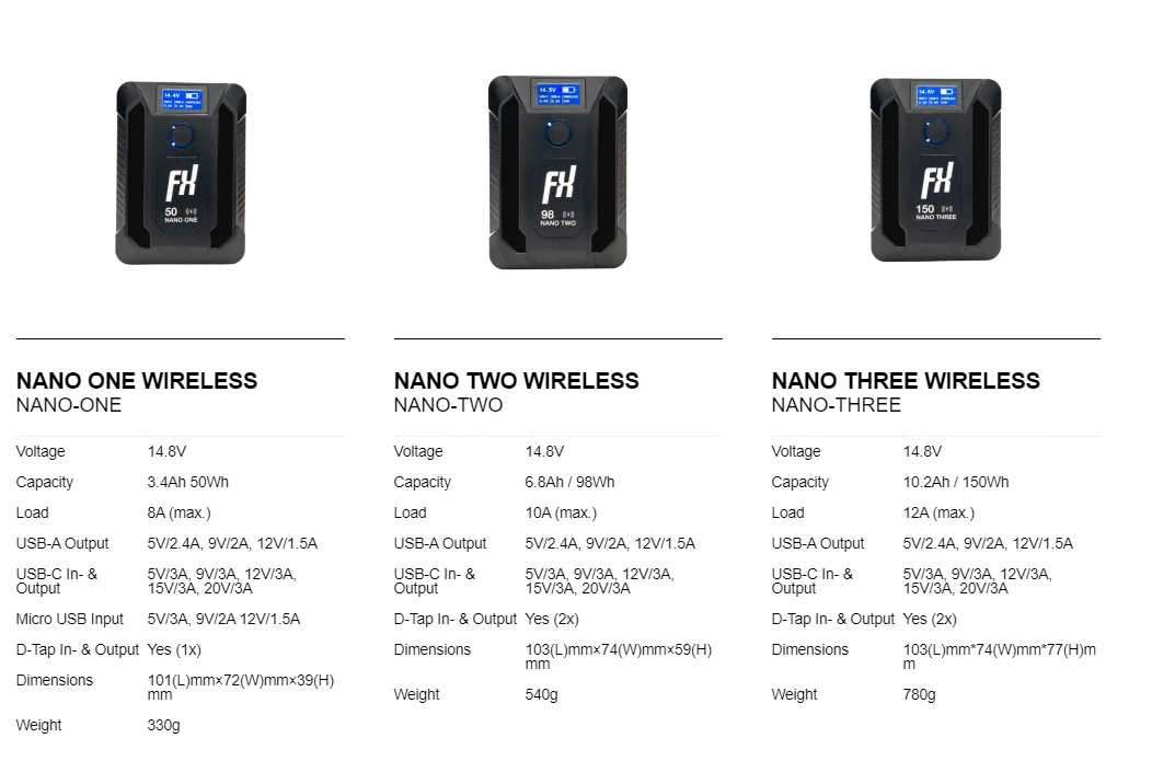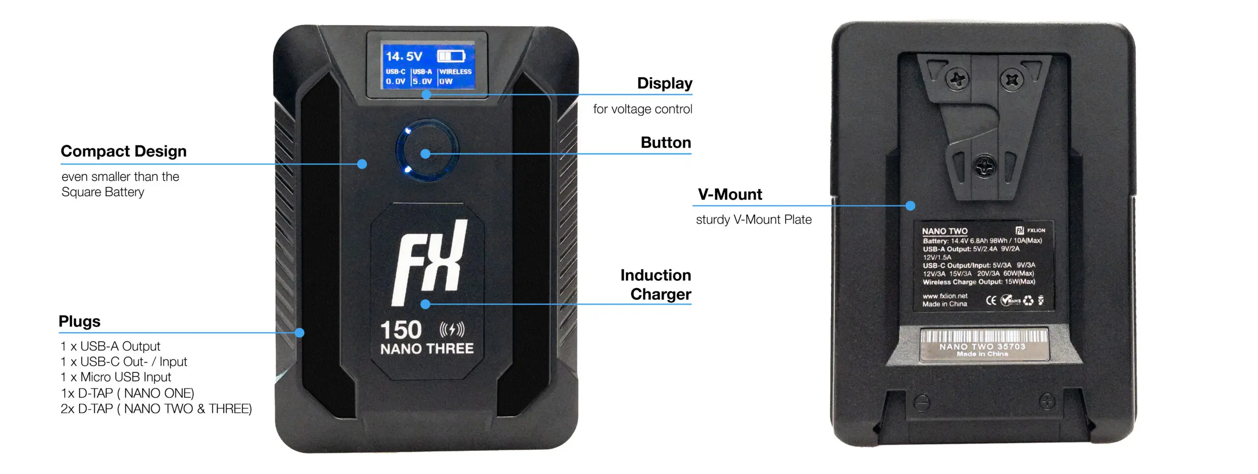 FXlion Nano One Two Three Wireless V-Mount Battery 50/98/150Wh for Cameras DSLR