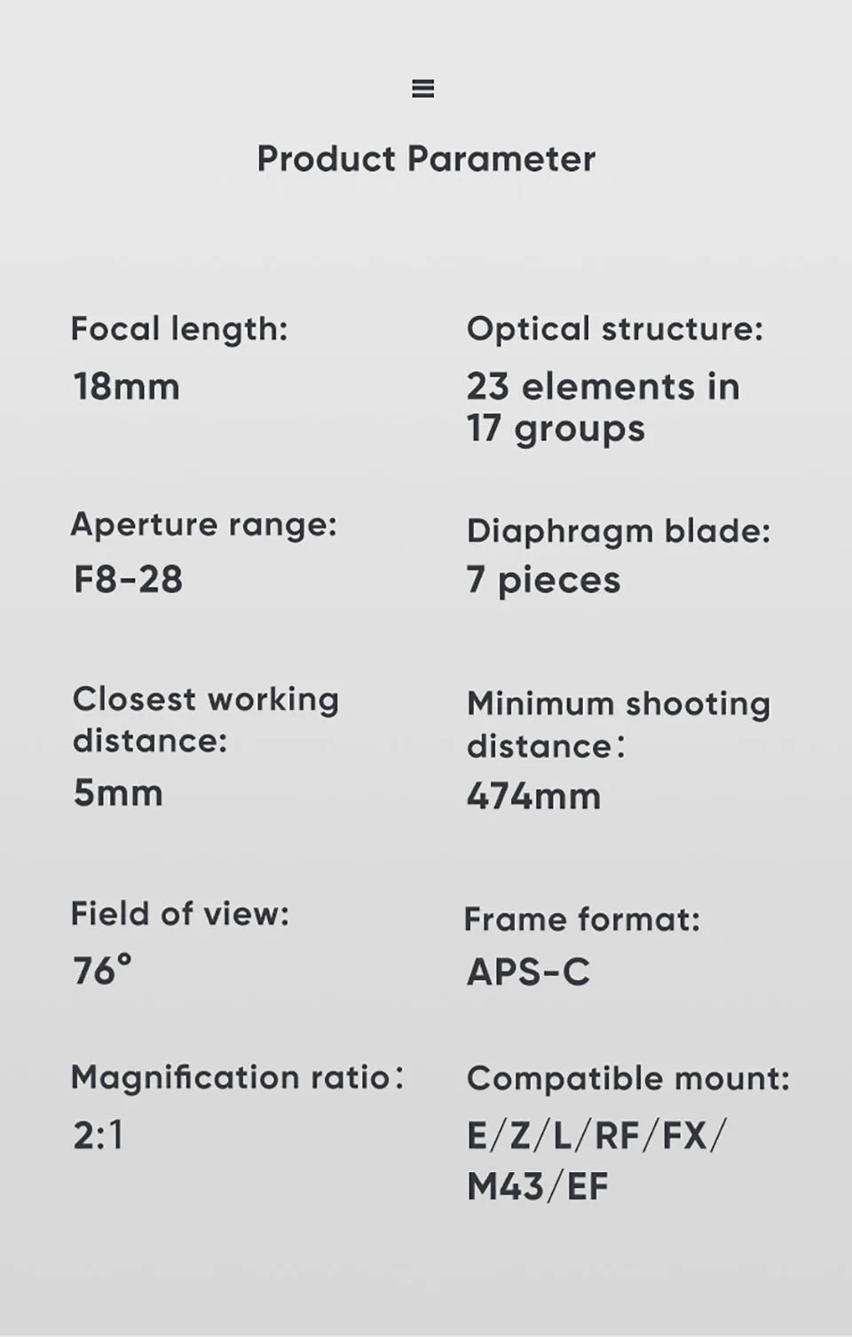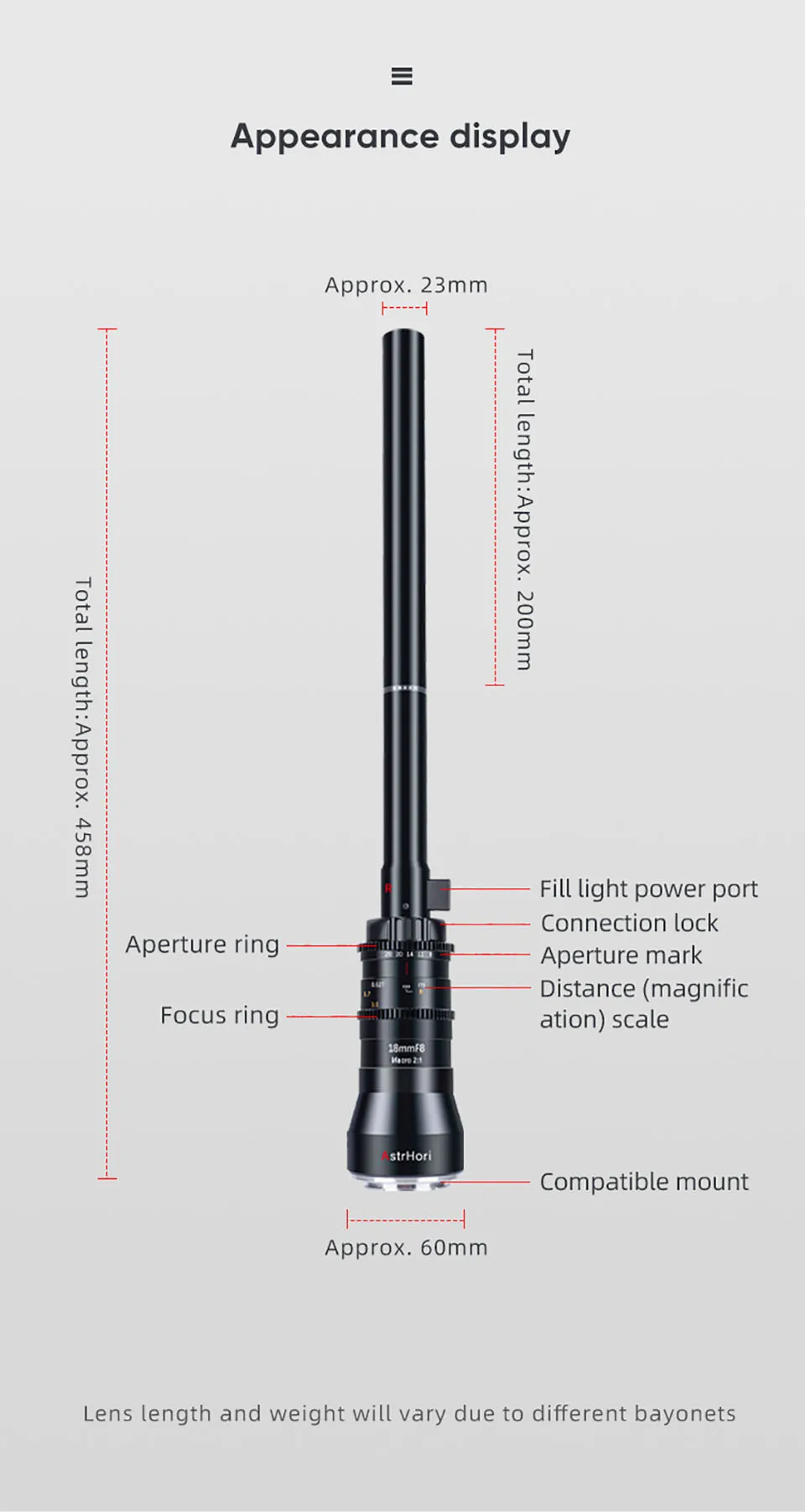 AstrHori 18mm F8 2X Macro Probe APS-C Lens for Fujifilm Fuji X mount X-T4 X-T3