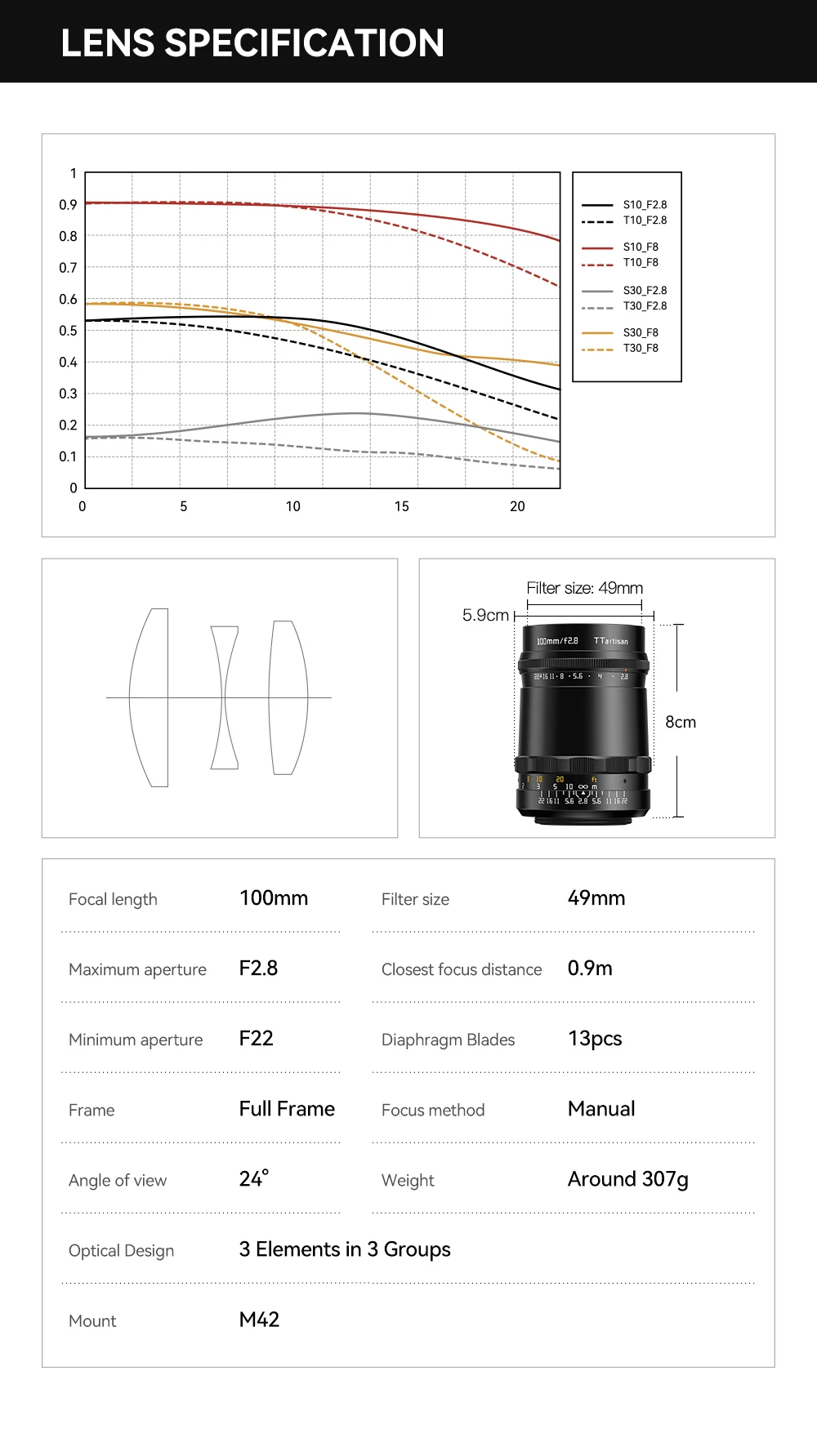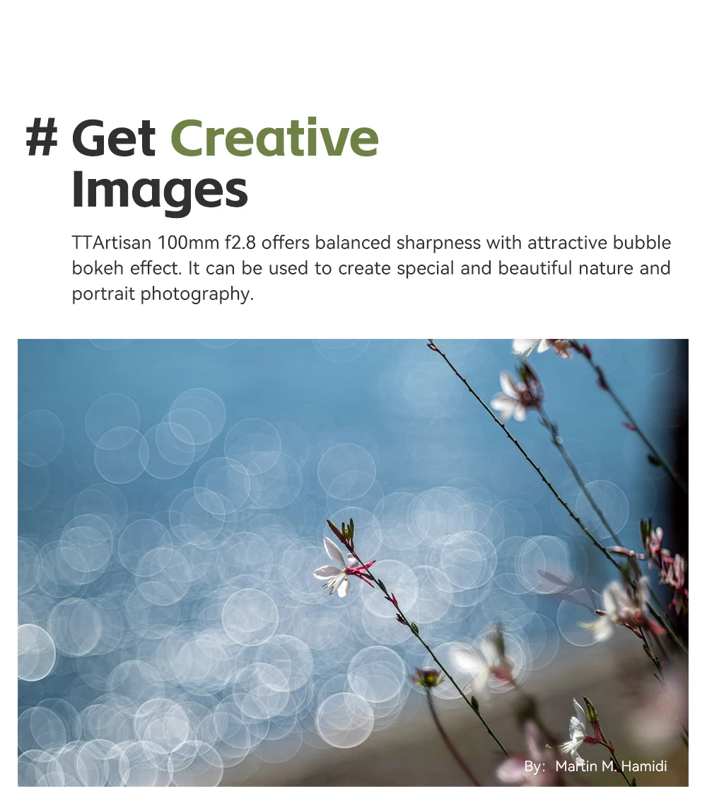 TTartisan 100mm F2.8 Full Frame Soap Bubble Bokeh MF Lens for M42 Mount Cameras