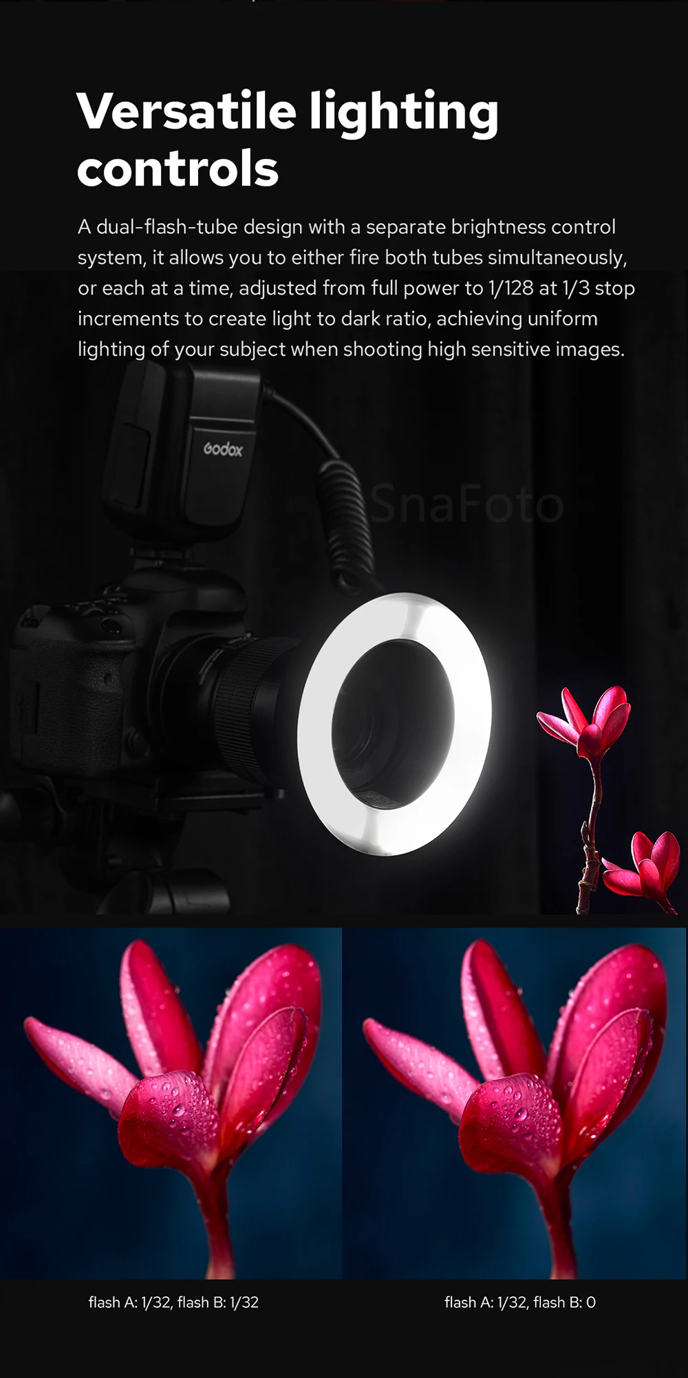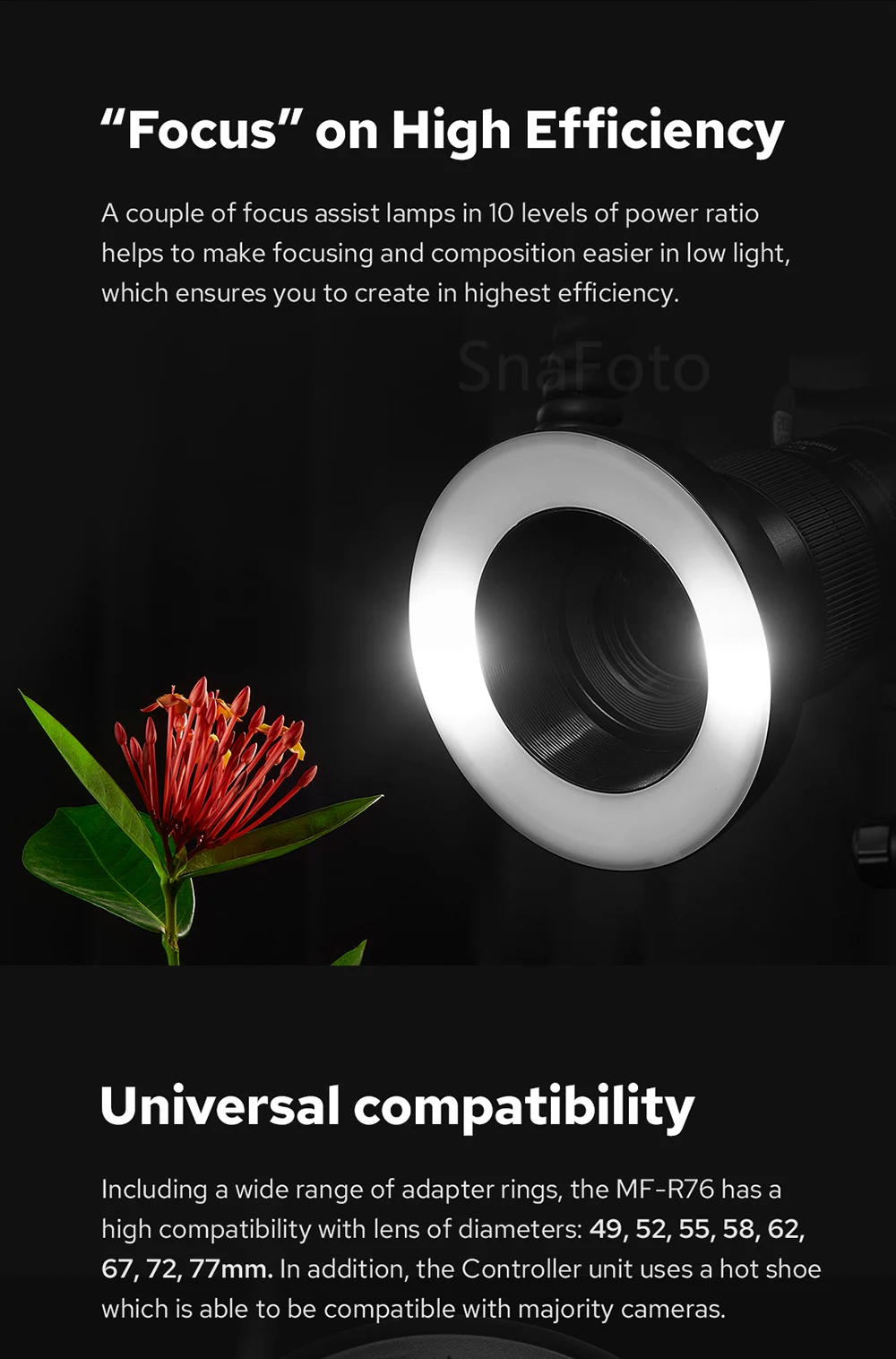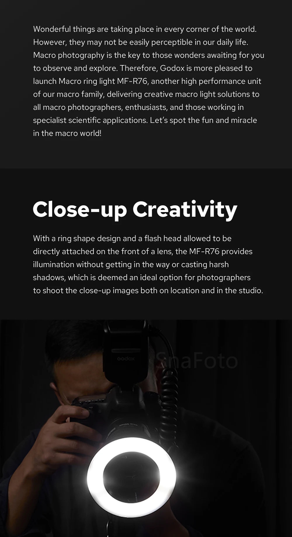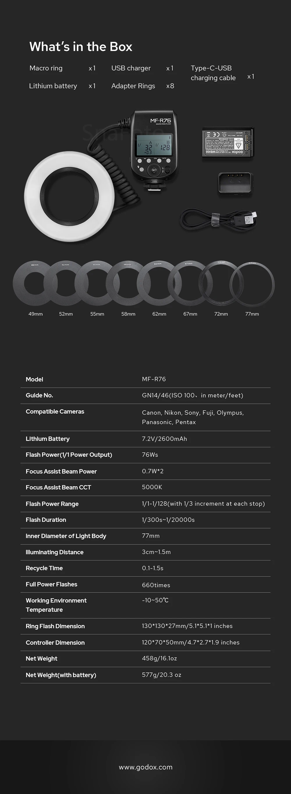 Godox MF-R76 Macro LED Ring Flash Light 5000K Close Up Speedlite for Camera DSLR