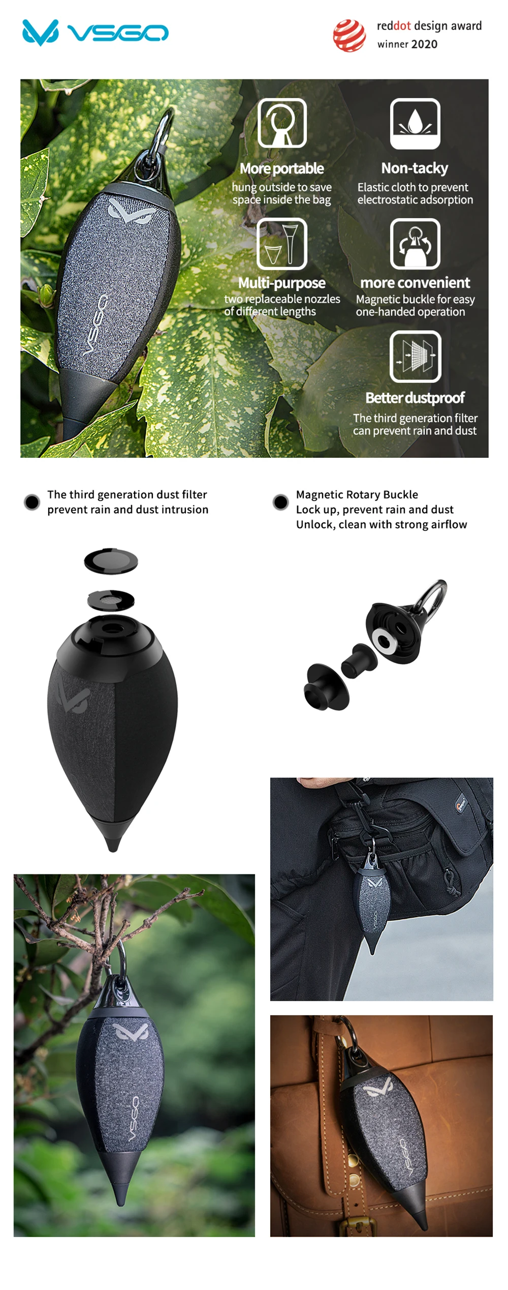 External built-in filter structure, effectively filtering dust and impurities in the air, ensuring dust-free cleaning