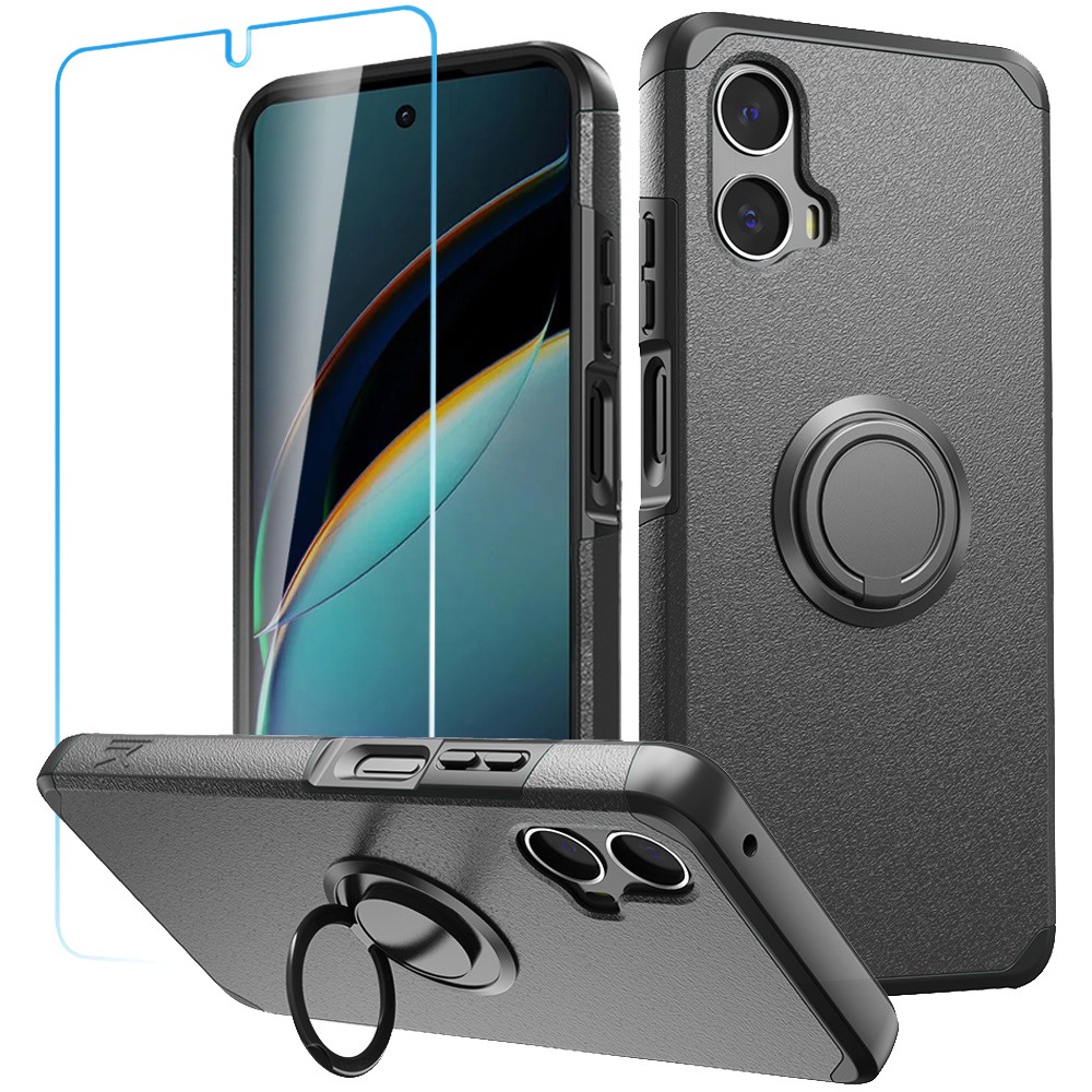 Phone Case for Motorola Moto G 5G (2024) Premium Shockproof Hard PC & Soft Silicone Bumper Hybrid Cover Built in Kickstand Ultra Slim Fit with Screen Protector Tempered Glass [Magnetic Car Mount Holder Not Included]