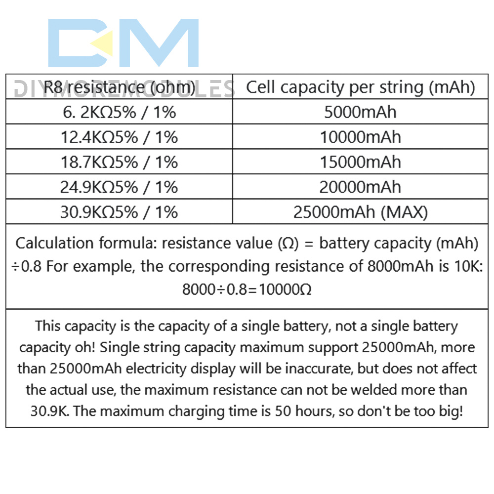 4: Select the battery can be used 4.15V/4.2V/4.35V/4.4V 18650, polymer, ternary lithium batteries, large monomer can be, a single string battery capacity of no more than 25000mAh, more than the power display will not be allowed. Support 3.65V lithium iron phosphate, do not support disposable dry cell, NiMH, NiCr, lead-acid batteries, etc. Battery minimum 2 strings, maximum 6 strings, the total voltage can not exceed 23V. single-string batteries need to be able to charge and discharge at least 10A above the flow, can not reach the power of please turn down the use.