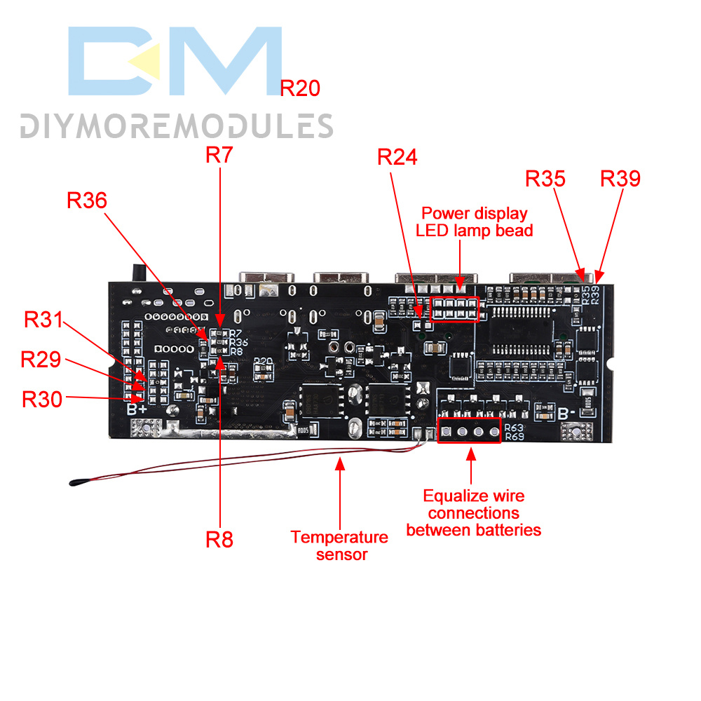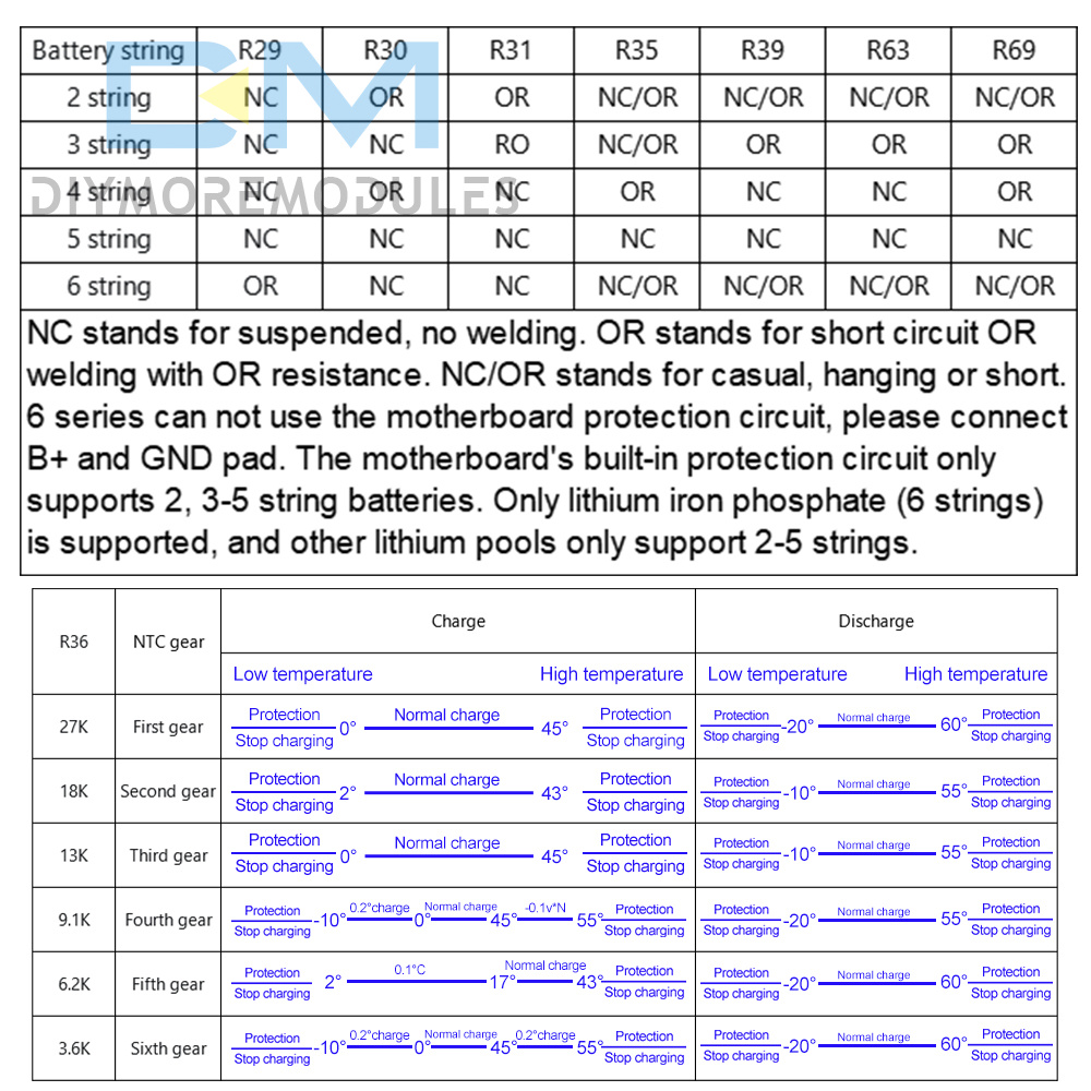 2: The motherboard comes with a protection chip, only supports 2-5 strings of batteries, 6 lithium iron phosphate batteries need to come with their own protection board, with protection board overcurrent protection current must be greater than 15A, otherwise it can not work properly, serious damage to the motherboard chip.